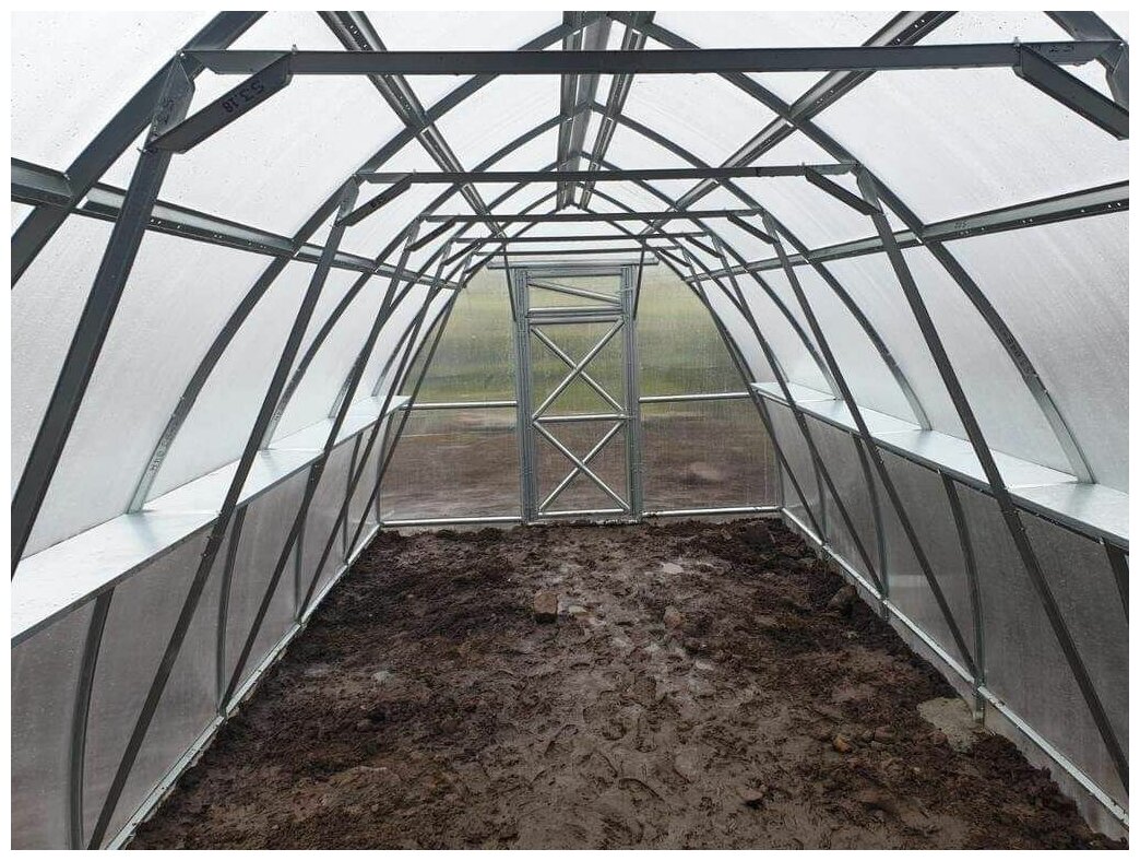 Теплица "Дачная Стрелка Люкс 3" 8м с поликарбонатом "воля Стандарт" и декоративной окантовкой