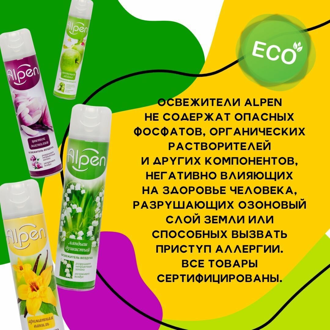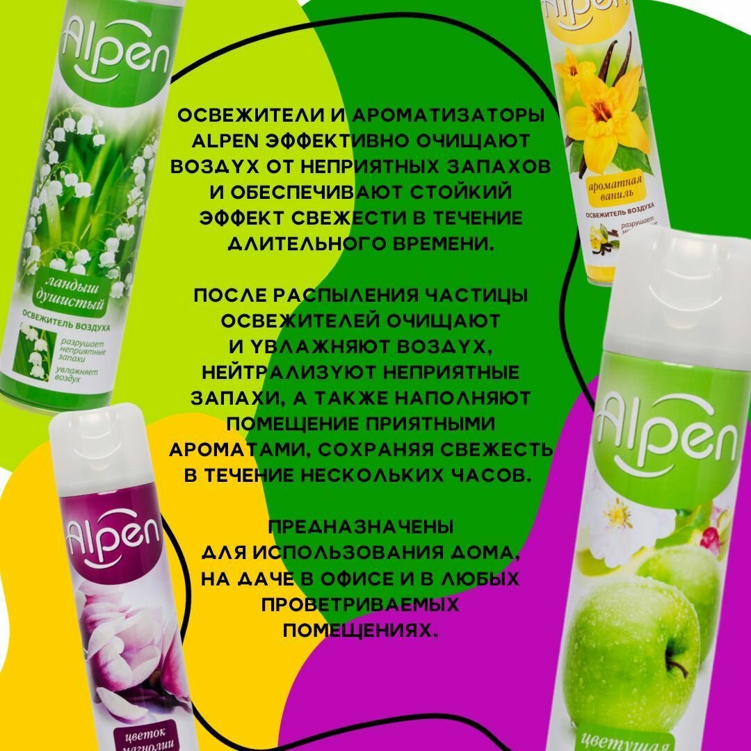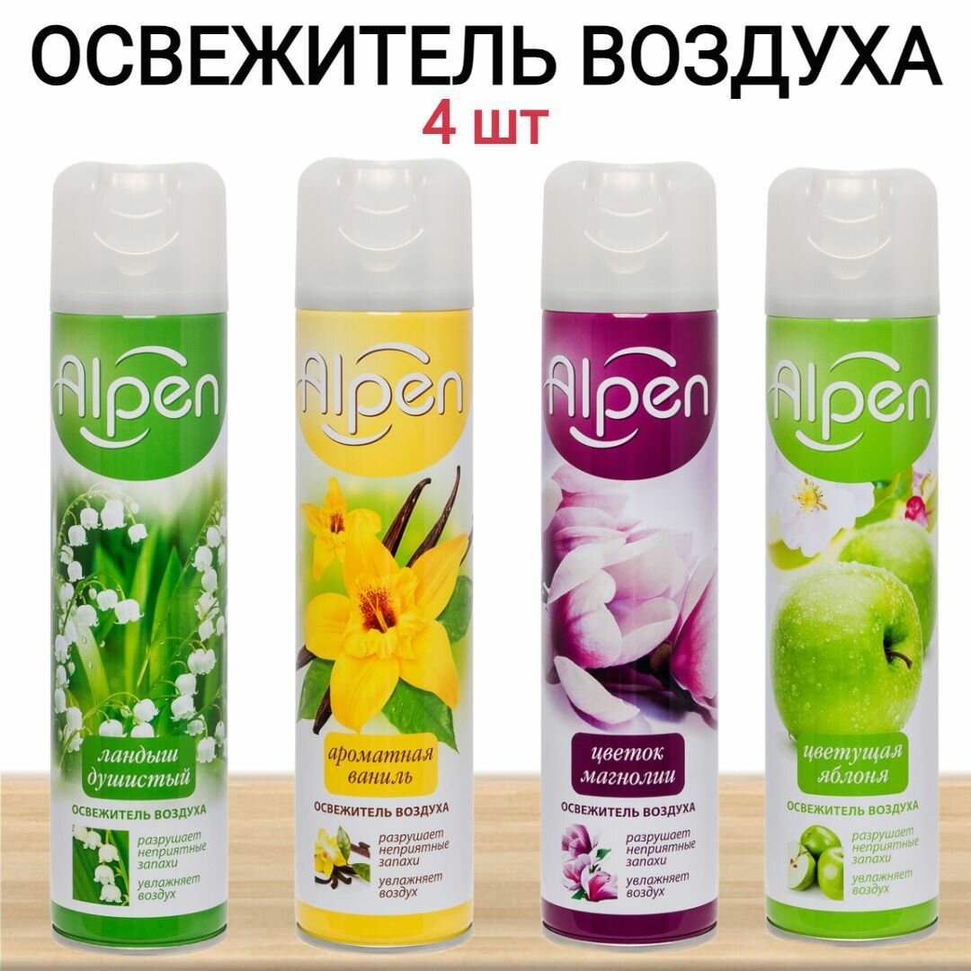 Купить Набор 4 шт освежитель воздуха Alpen ароматная ваниль, цветок магнолии, ландыш душистый, цветущая яблоня (300 мл*4)