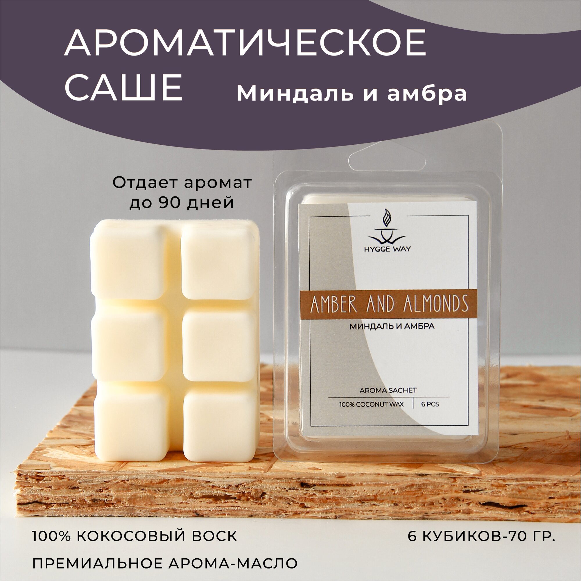 Купить Саше для шкафа и белья ароматическое "Hygge Way". Ароматизатор в шкаф на основе кокосового воска. Аромасаше и мелтсы для одежды "Миндаль и амбра"
