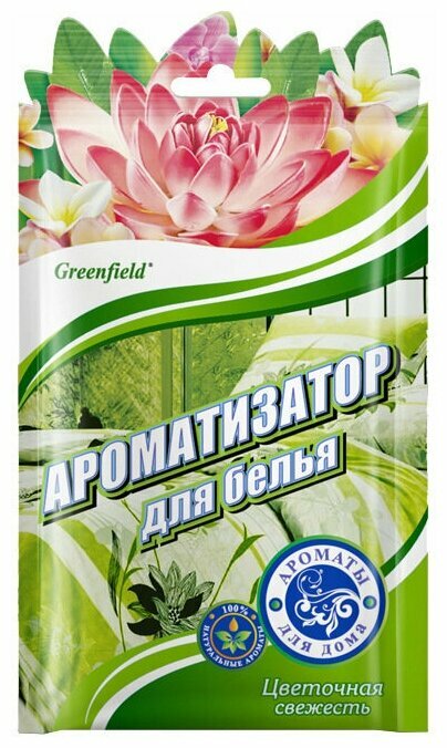 | Подробная комплектация | Ароматизатор для белья Greenfield Цветочная свежесть, 15 гр. |
