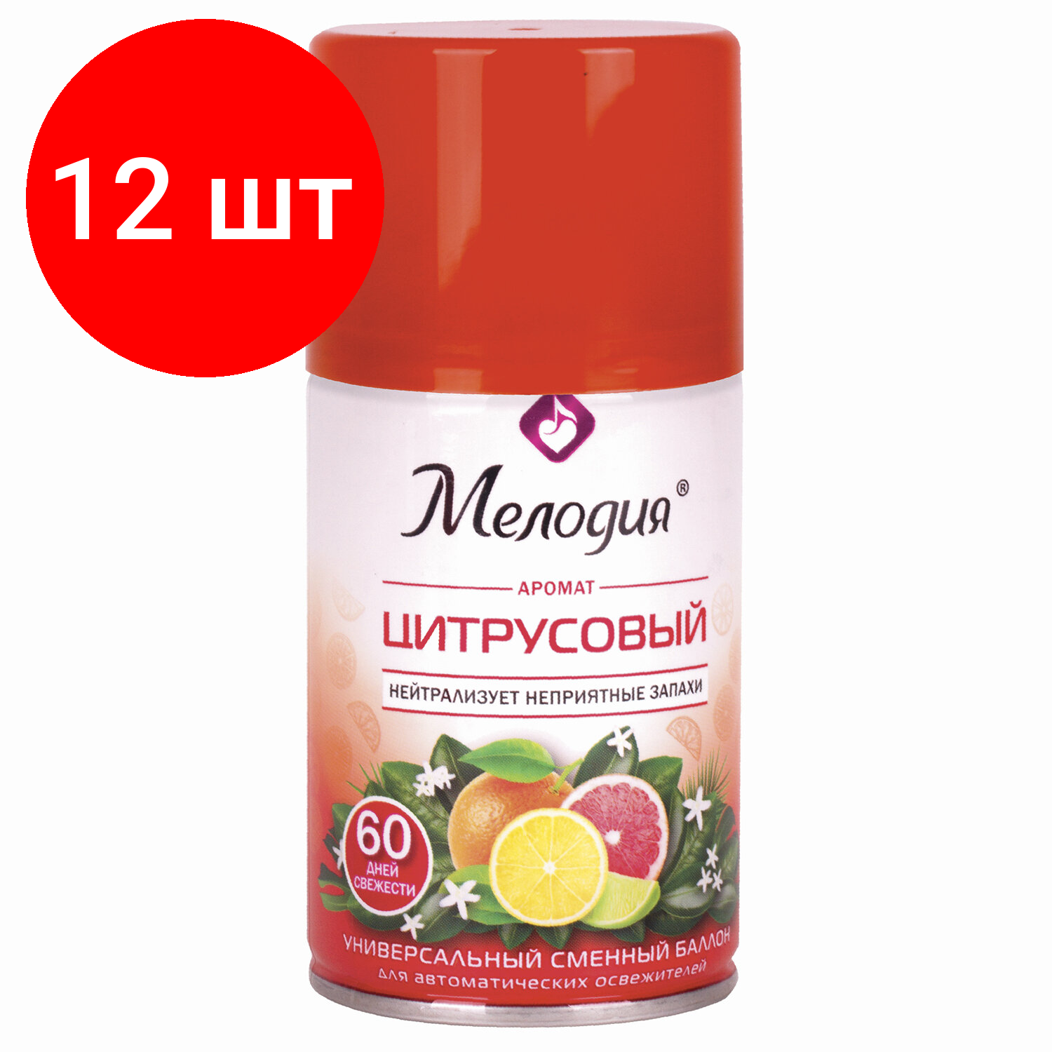 Купить Комплект 12 шт, Сменный баллон 250 мл мелодия "Цитрусовый", для автоматических освежителей, универсальный, 605229