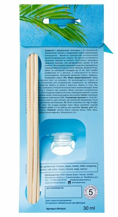 | Подробная комплектация | диффузор ароматический, 5 ротанговых палочек |