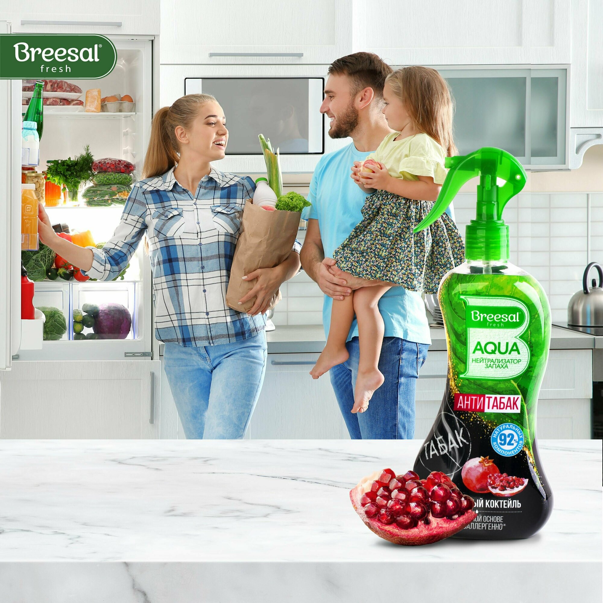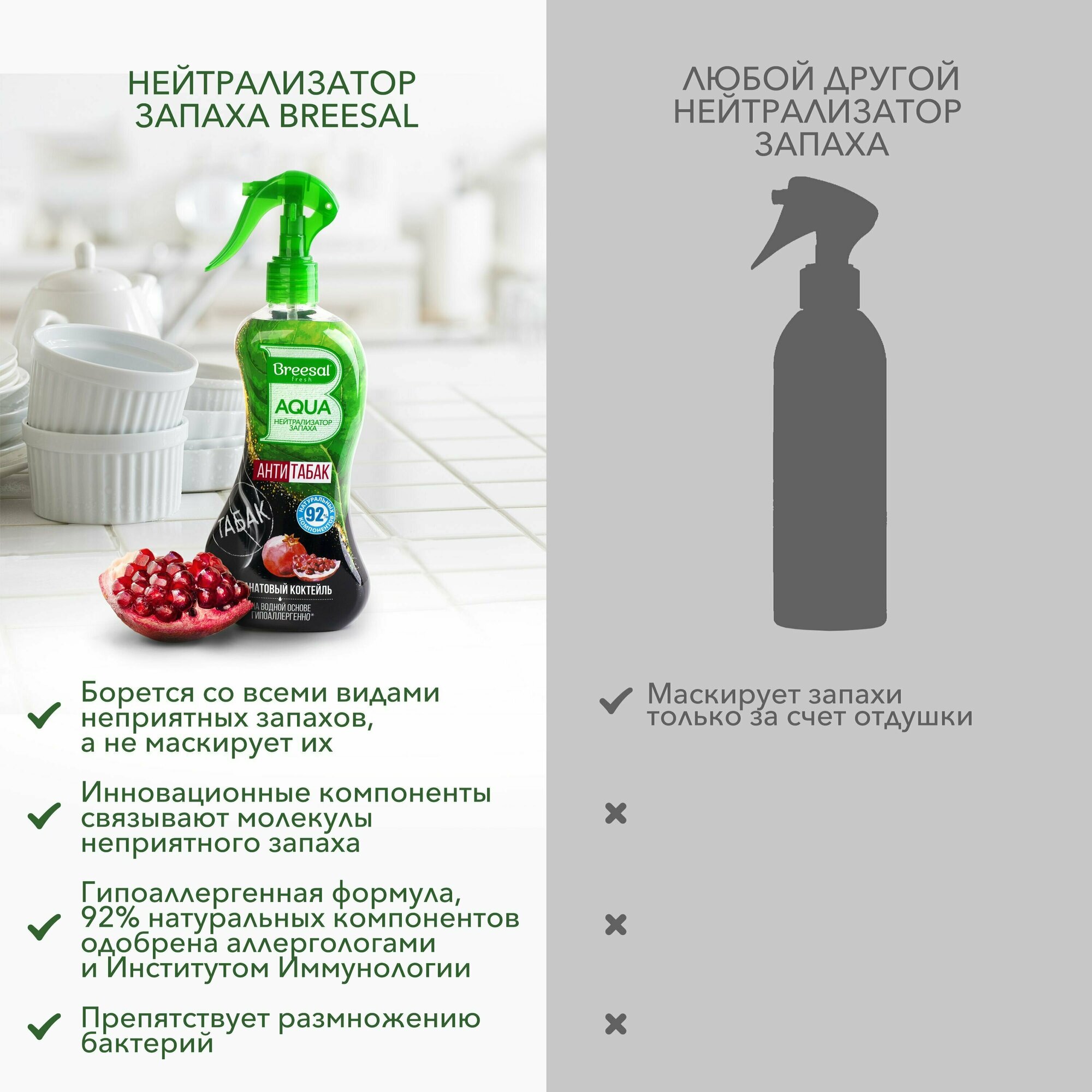 Breesal AQUA-нейтрализатор запаха Антитабак Гранатовый коктель, 375мл, 2шт.