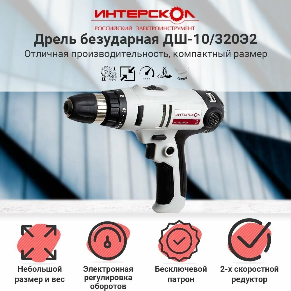 Дрель-шуруповерт Интерскол ДШ-10/320Э2, 320 Вт, патрон быстрозажимной