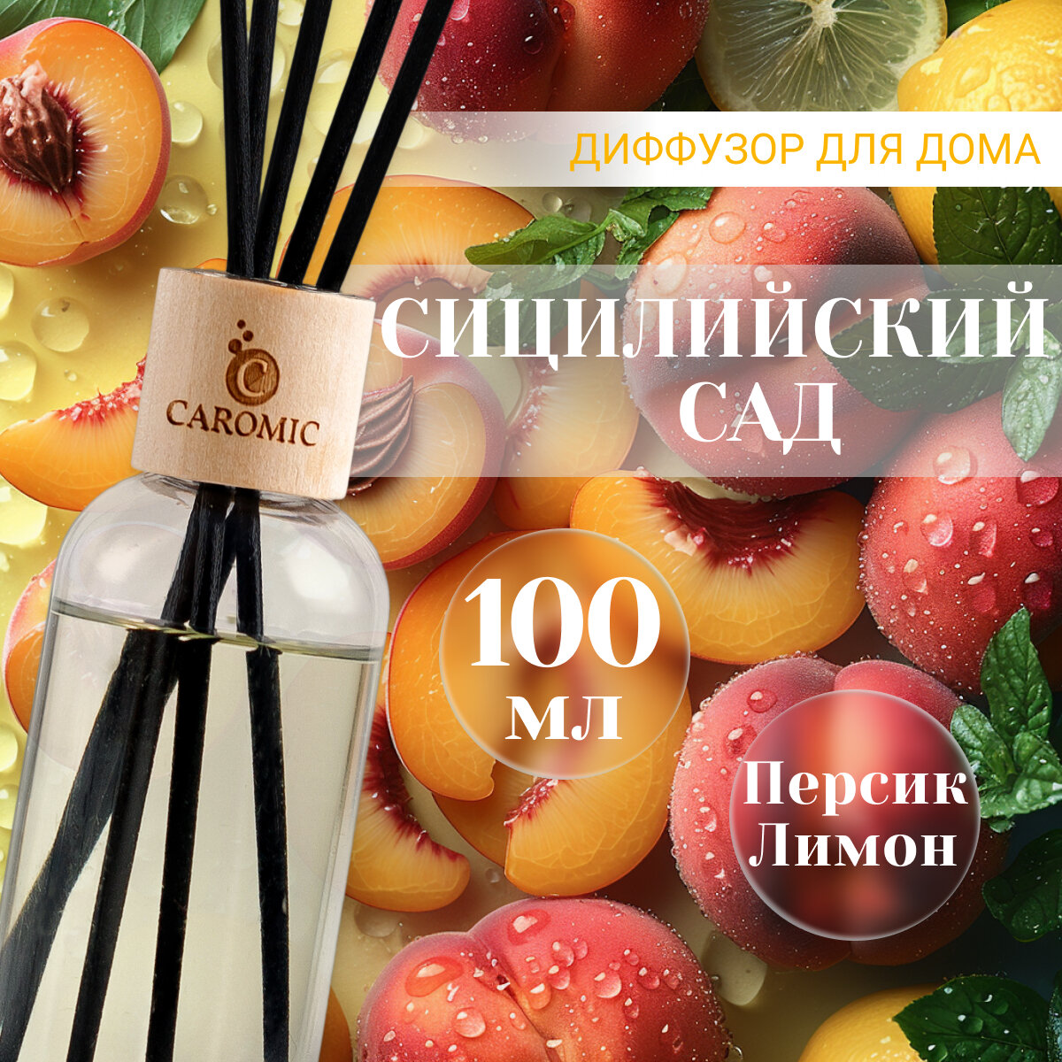 Купить Ароматический диффузор Сицилийский сад Персик и Лимон Ароматизатор для дома и офиса с палочками CAROMIC 100 мл