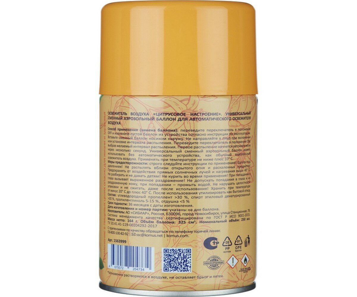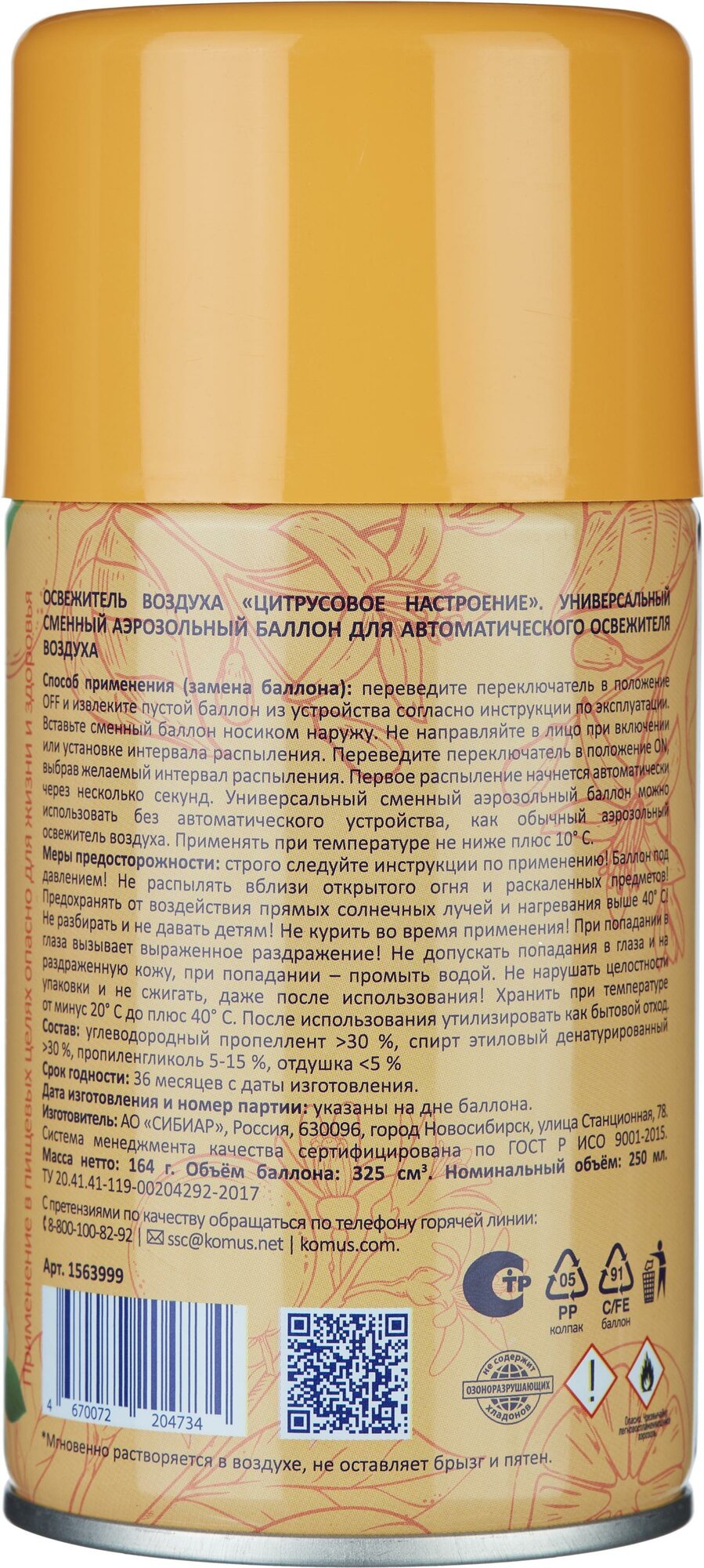 Сменный баллон Luscan Цитрусовое настроение, сухое распыление, 250 мл