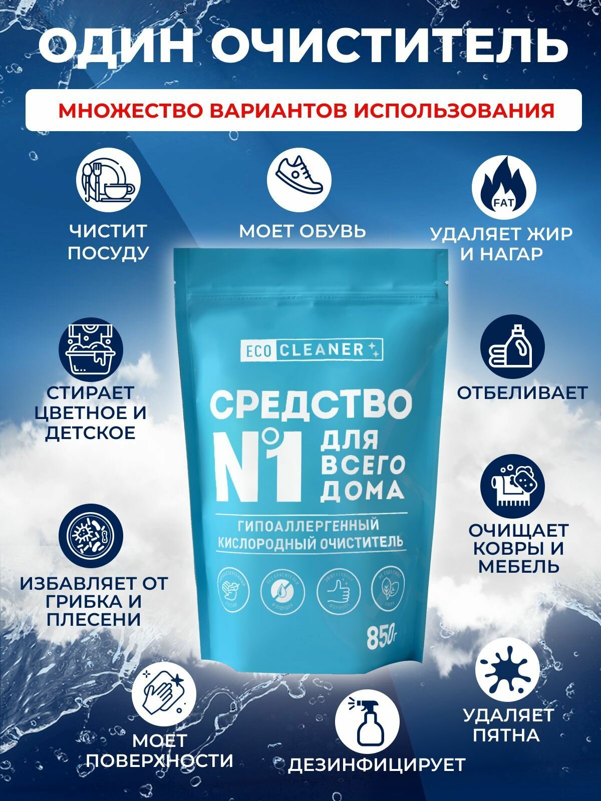 Купить Универсальный кислородный пятновыводитель для одежды, белого и цветного белья, очиститель для всего дома Eco Cleaner