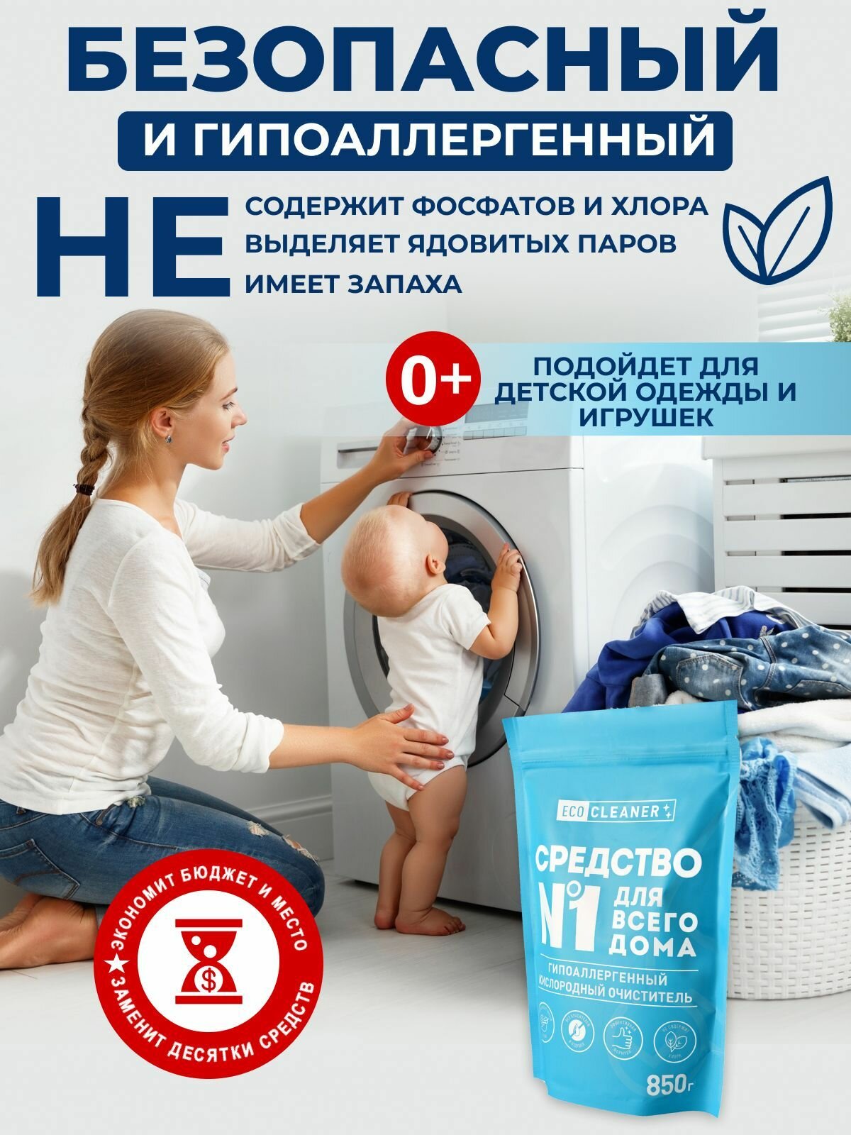 Универсальный кислородный пятновыводитель для одежды, белого и цветного белья, очиститель для всего дома Eco Cleaner интересное:
