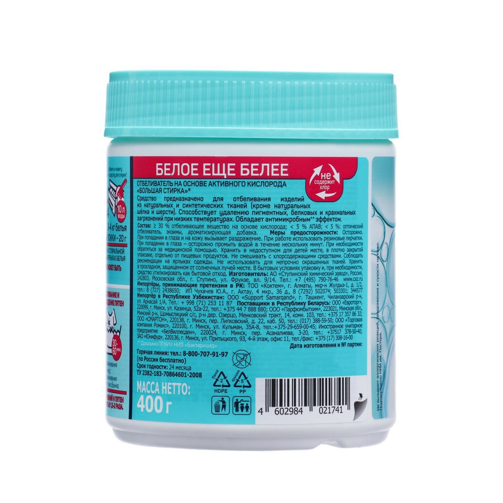 Отбеливатель Большая стирка на основе активного кислорода, 400 г, банка интересное:
