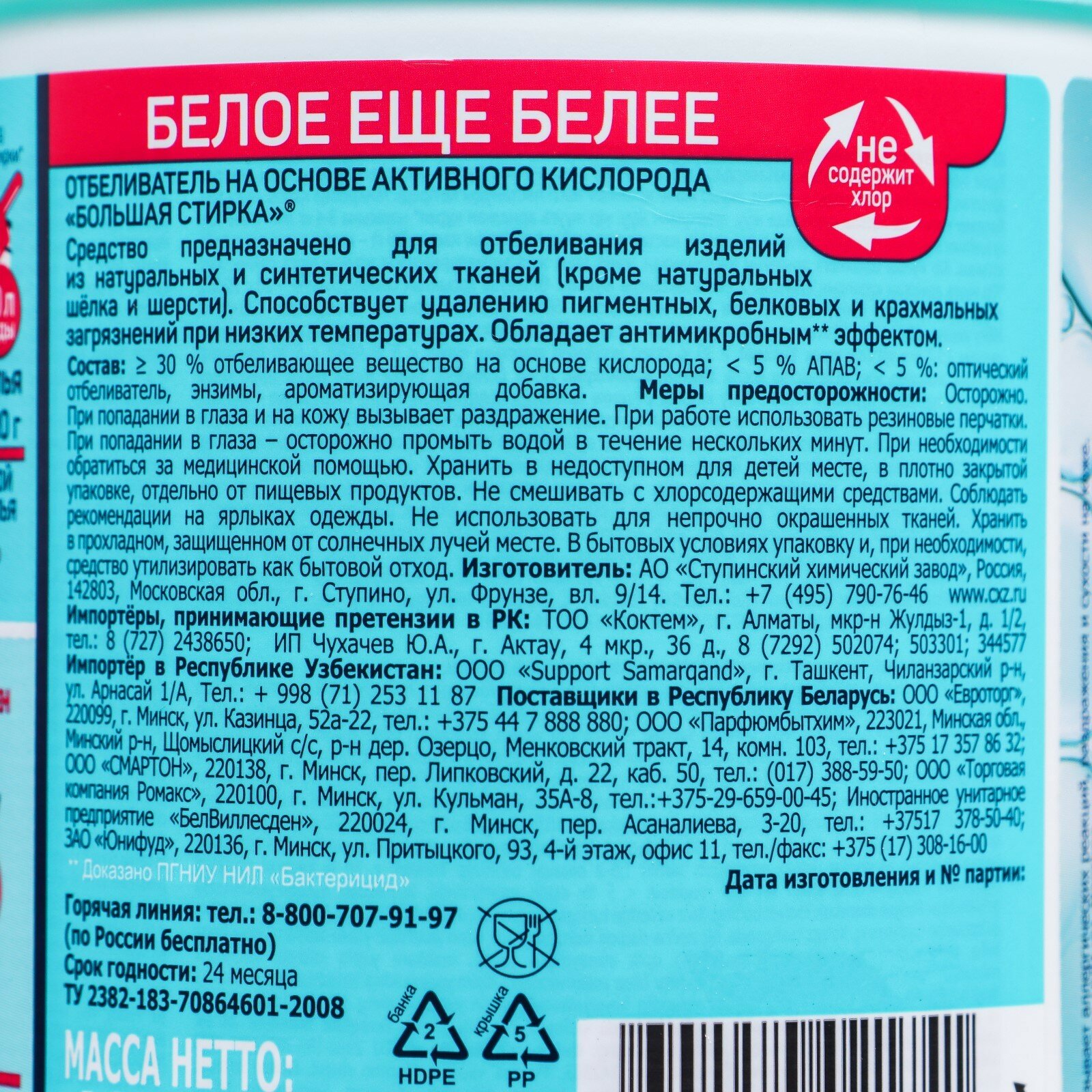 Большая стирка отбеливатель на основе активного кислорода, 1000 г (версия 2022)