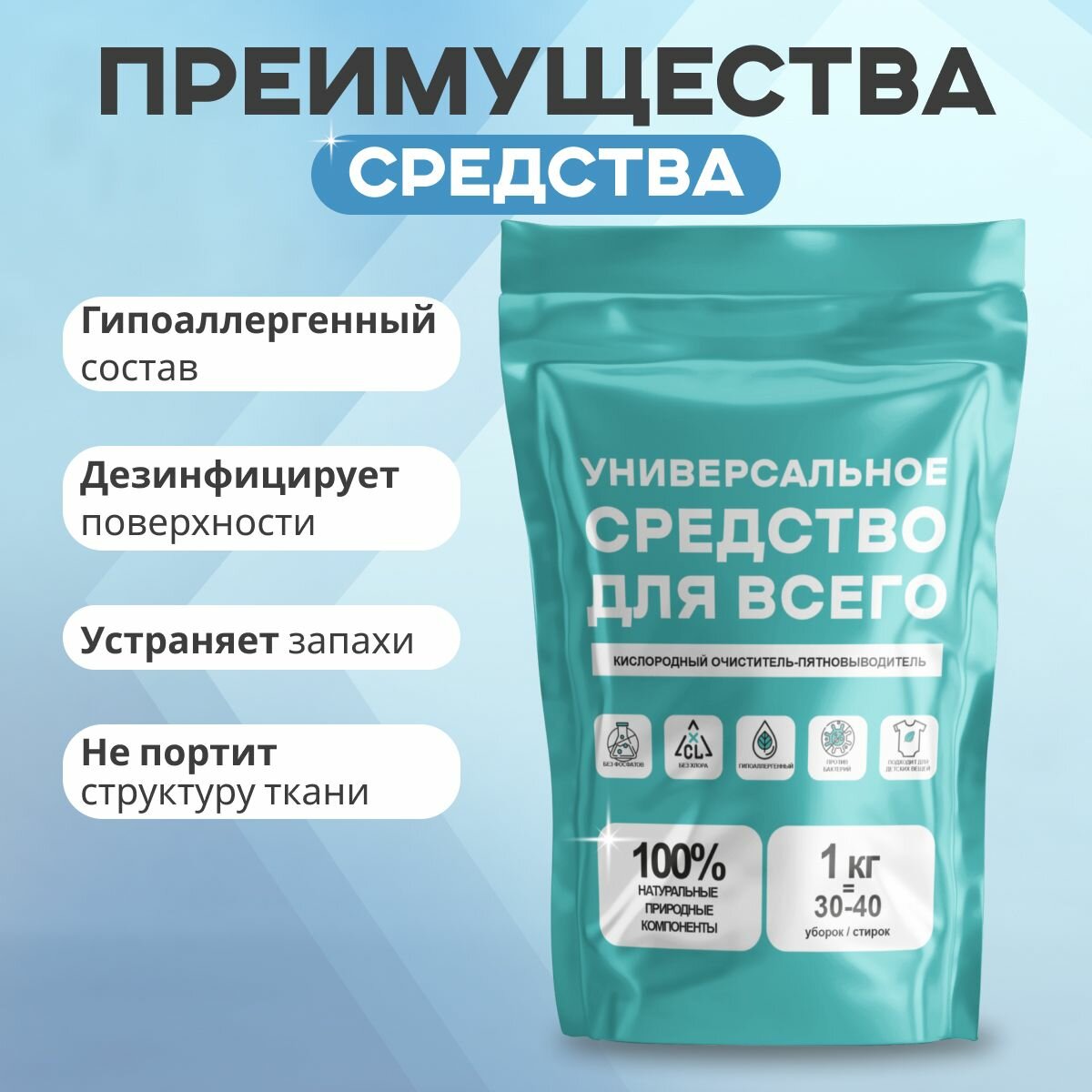 Купить Кислородный отбеливатель, пятновыводитель, очиститель "Универсальное средство для всего"