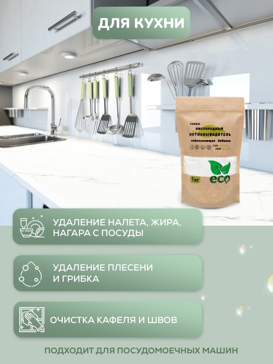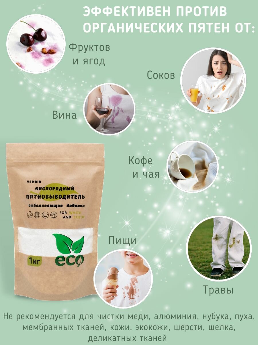Кислородный отбеливатель Vembir 1 кг, пятновыводитель, чудо очиститель, перкарбонат натрия 100% интересное: