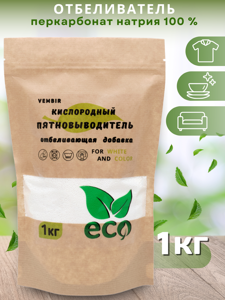Купить Кислородный отбеливатель Vembir 1 кг, пятновыводитель, чудо очиститель, перкарбонат натрия 100%