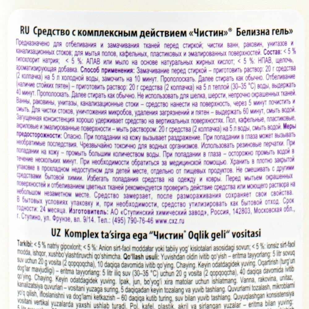 Чистин Белизна гель, 750 г интересное: