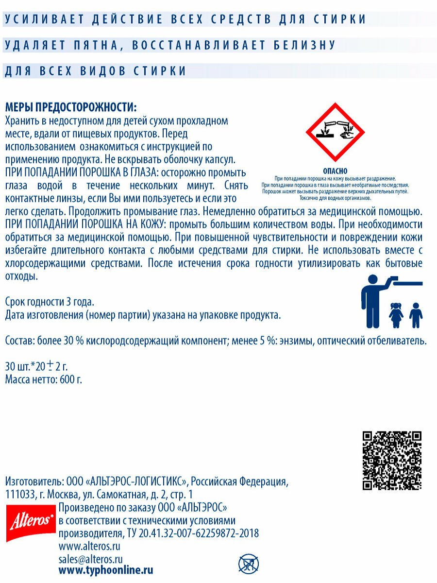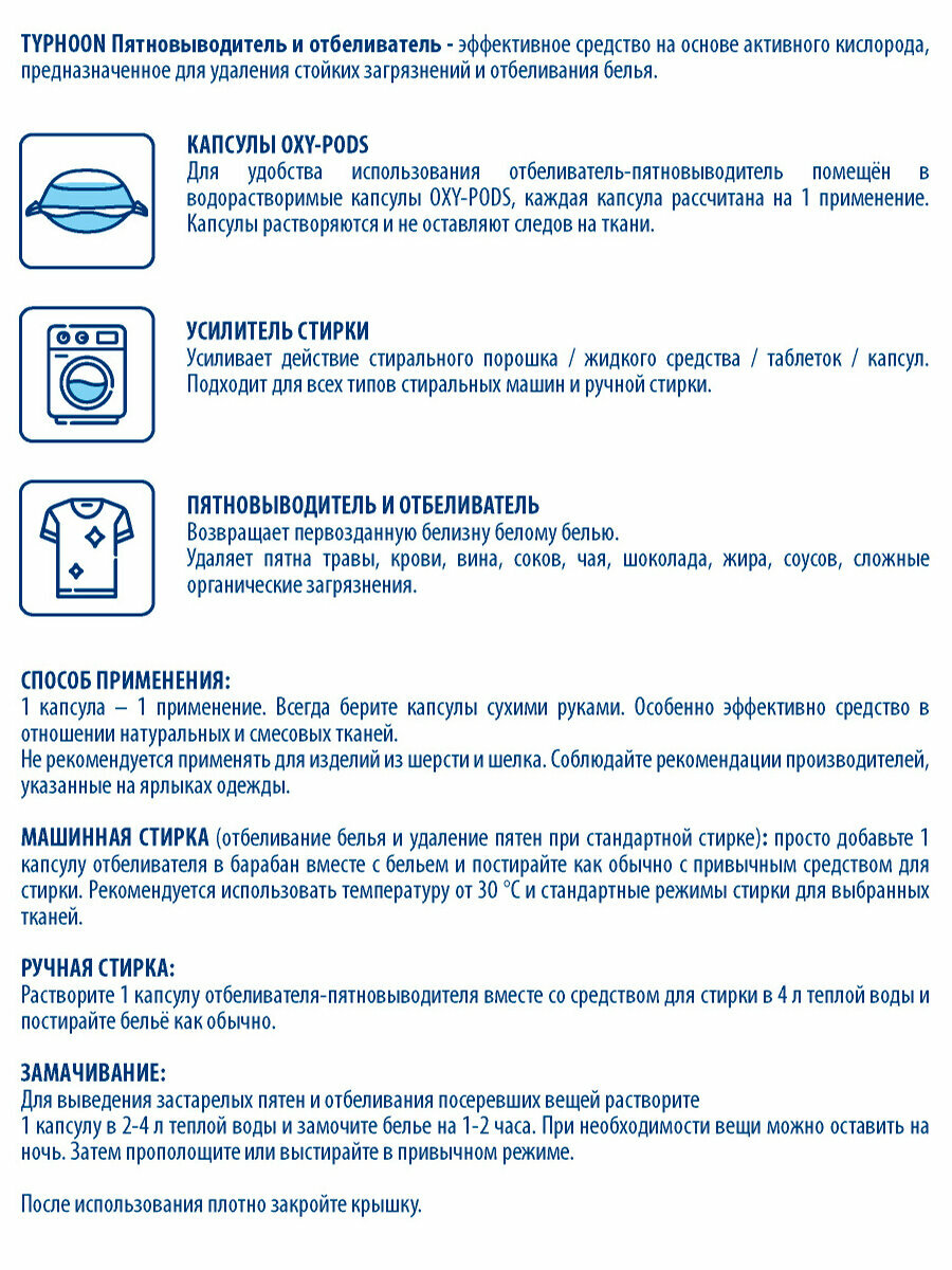 TYPHOON Пятновыводитель и отбеливатель в капсулах, 30 шт. интересное: