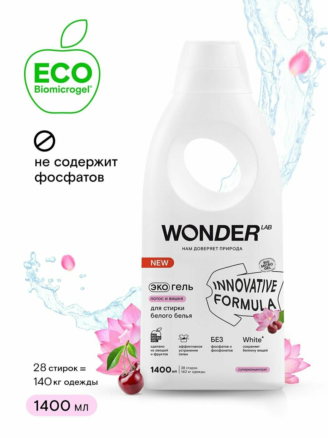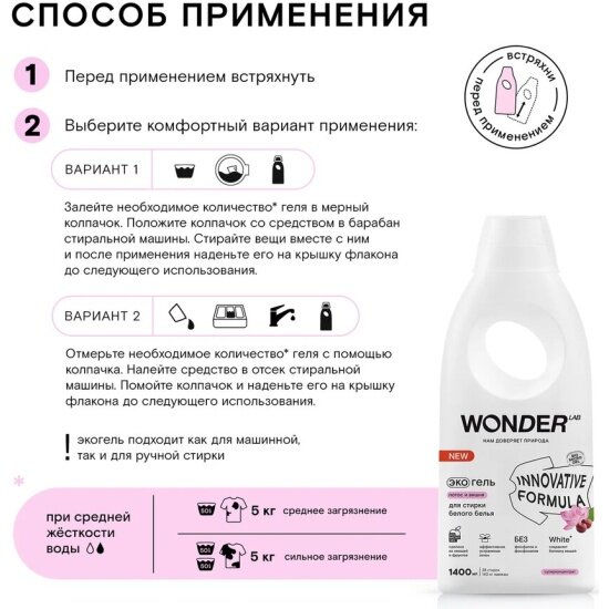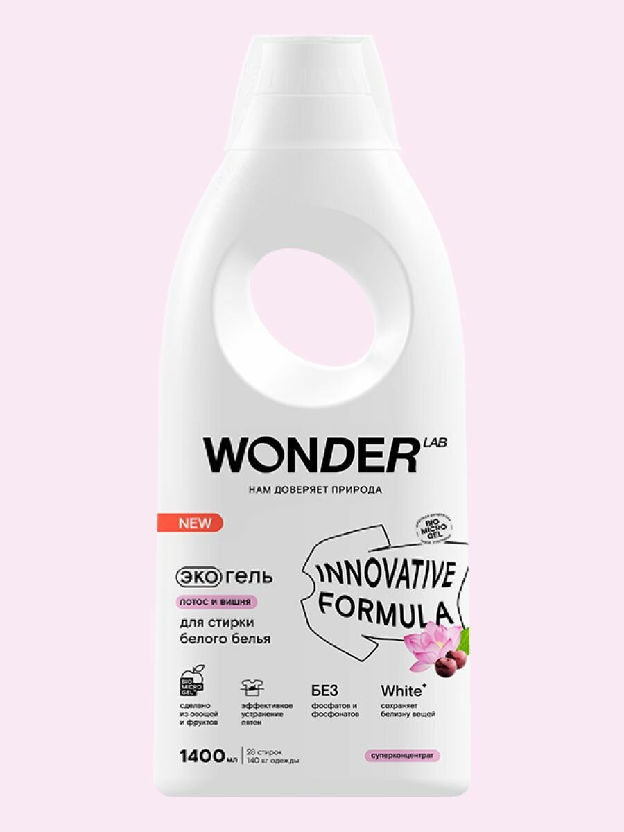 Экогель для стирки WONDER LAB "Лотос и Вишня", для белого белья, 1,4 л (WL1400WGL1LC-V)