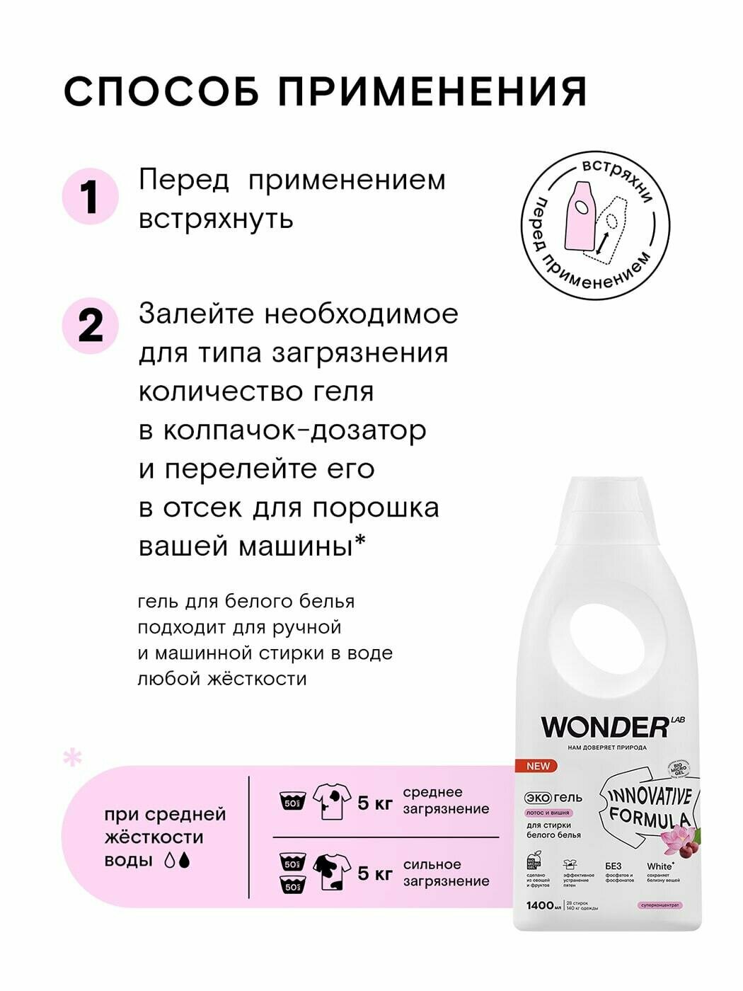 СохранитьГель для стирки белого белья и белых вещей WONDER LAB, гипоаллергенный жидкий порошок с ароматом лотоса и вишни, 1400 мл интересное: