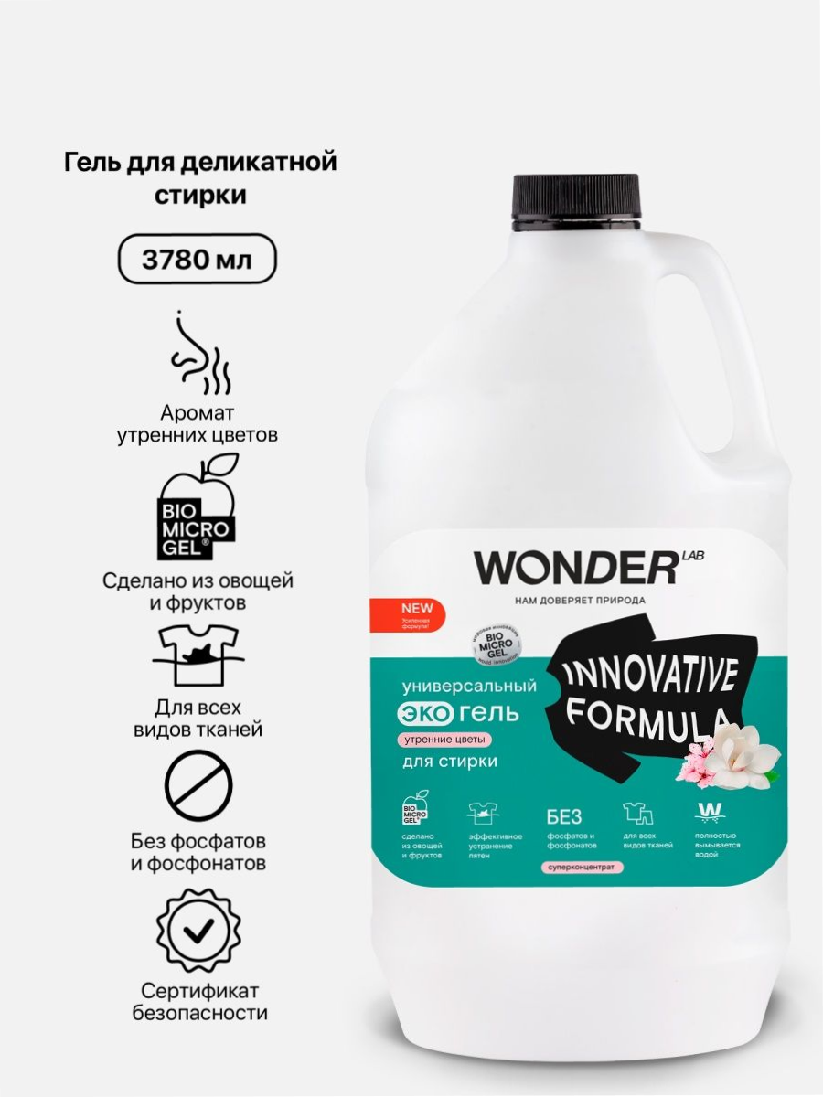 Купить Универсальный эко гель для стирки белья WONDER LAB, "Утренние цветы", 3780 мл