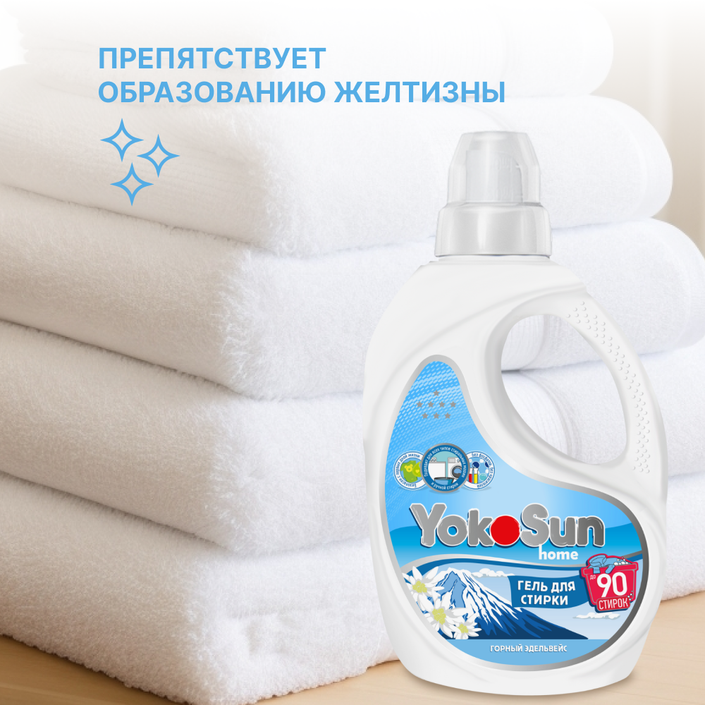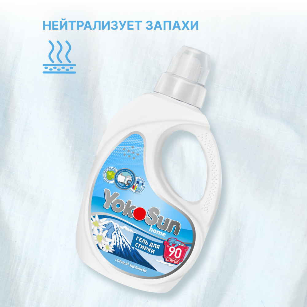 Гель для стирки белья YokoSun "Горный эдельвейс" 1л, универсальный, детский, жидкий порошок концентрат