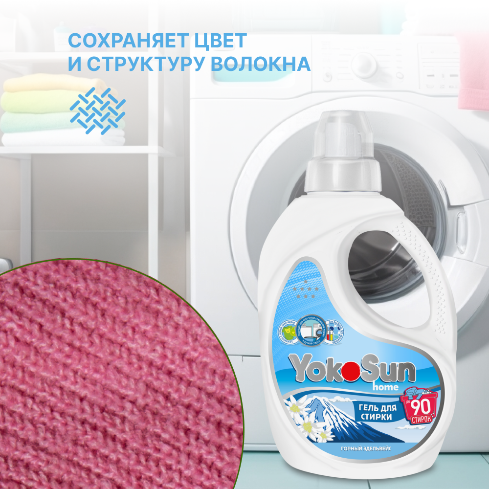 СохранитьГель для стирки YokoSun, Горный эдельвейс, 2,1л / Гипоаллергенный концентрированный универсальный жидкий стиральный порошок для белых и цветных вещей, для всех типов тканей, без хлора и фосфатов, эко, подходит с рождения интересное: