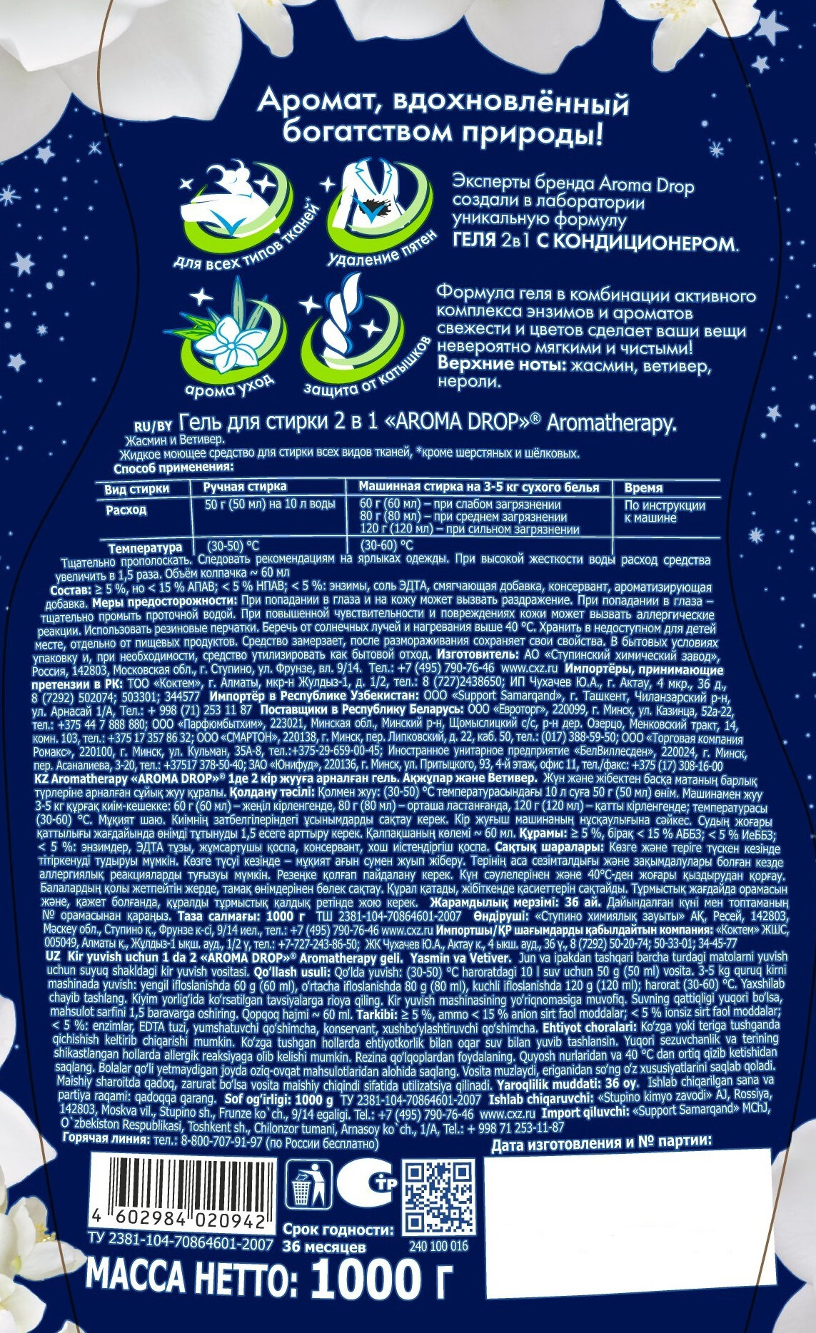 СохранитьГель для стирки AROMA DROP 2 в 1 Aromatherapy "Жасмин и Ветивер", 1000 г интересное:
