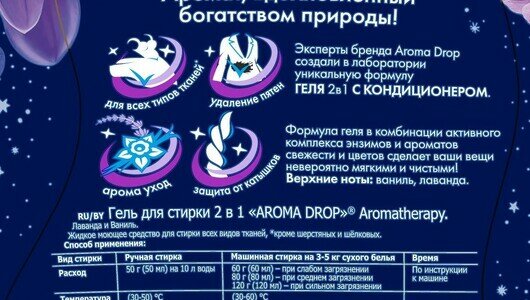 Ниже Вы можете прочитать отзывы на Aroma Drop гель для стирки Aromatherapy Лаванда и ваниль 2в1 1л, ознакомится с подробными характеристиками, посмотреть интересные обзоры и фотографии на Aroma Drop гель для стирки Aromatherapy Лаванда и ваниль 2в1 1л.