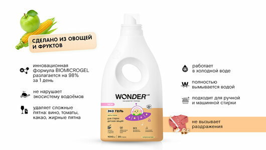 Гель для стирки детских вещей WONDER LAB ЭКО, 1400 мл, 28 стирок, флакон (4680068932275)