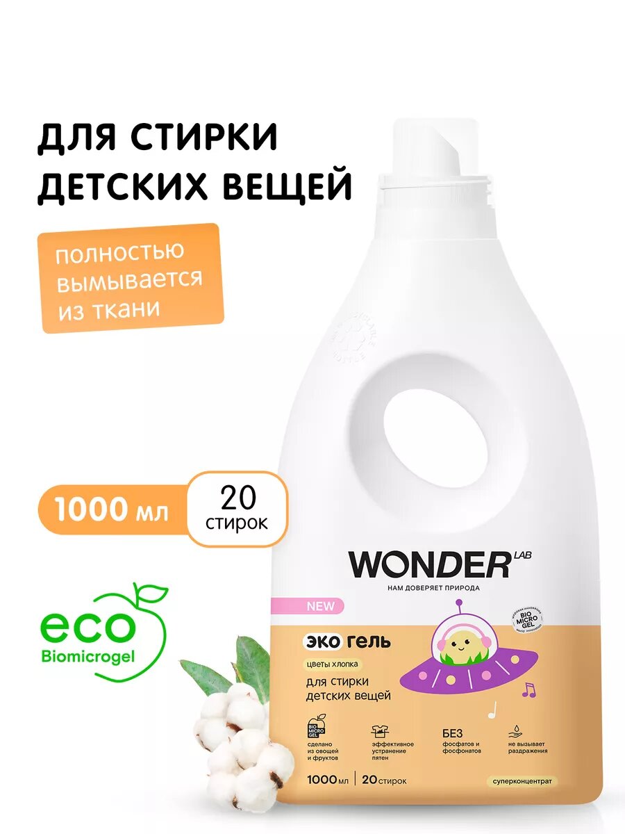 Купить Гель для стирки WONDER LAB Экогель для детских вещей цветы хлопка, 1 л, бутылка