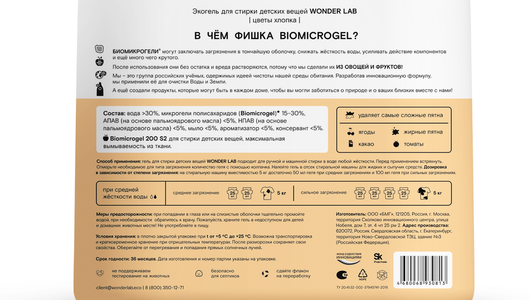 СохранитьГель для стирки WONDER LAB Экогель для детских вещей цветы хлопка, 1 л, бутылка интересное:
