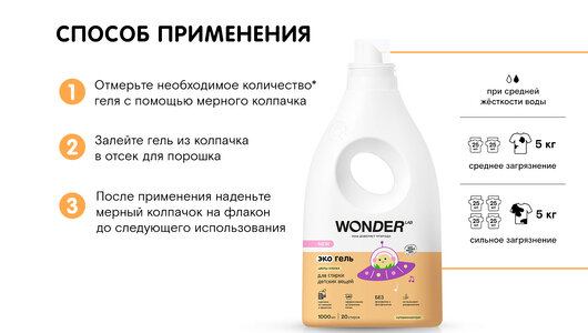 | Подробная комплектация | Эко гель для стирки белья WONDER LAB 1шт |