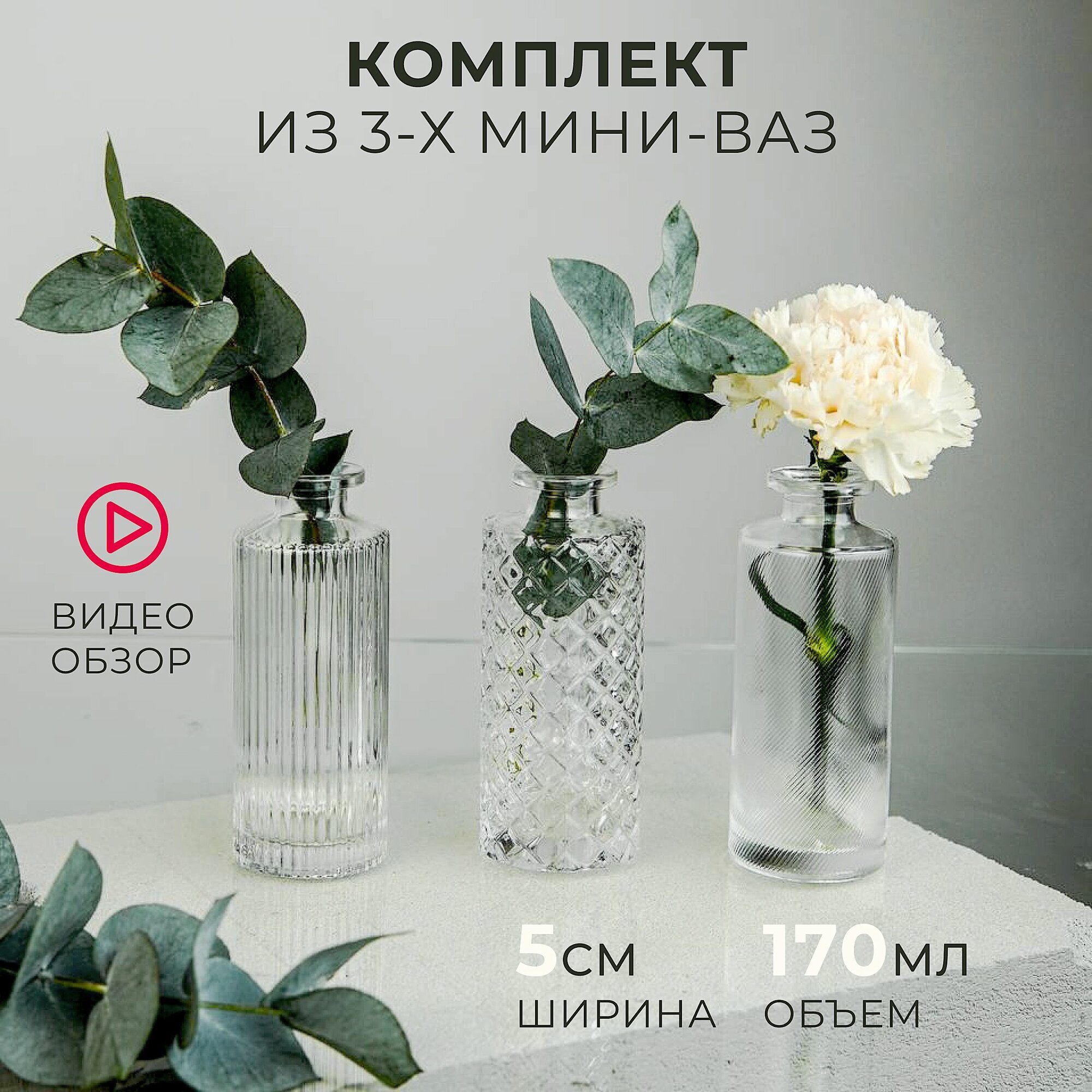 Купить Ваза для цветов и сухоцветов из стекла для декора Orlove Набор Norge - 3 шт