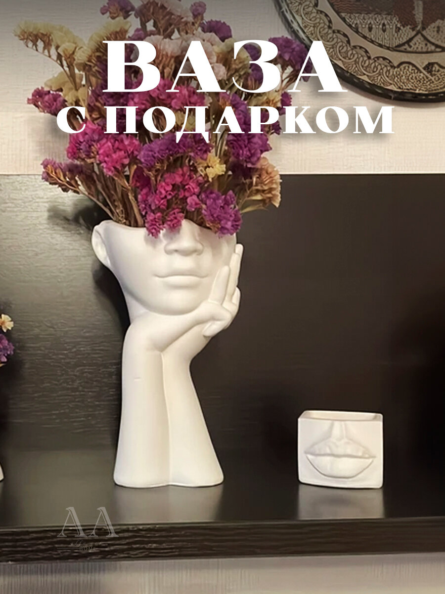 Ваза для цветов сухоцветов и декора из гипса лицо девушка Милота