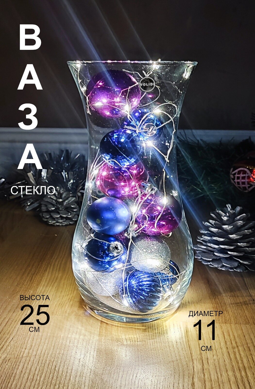 Ваза для цветов стекло 25см