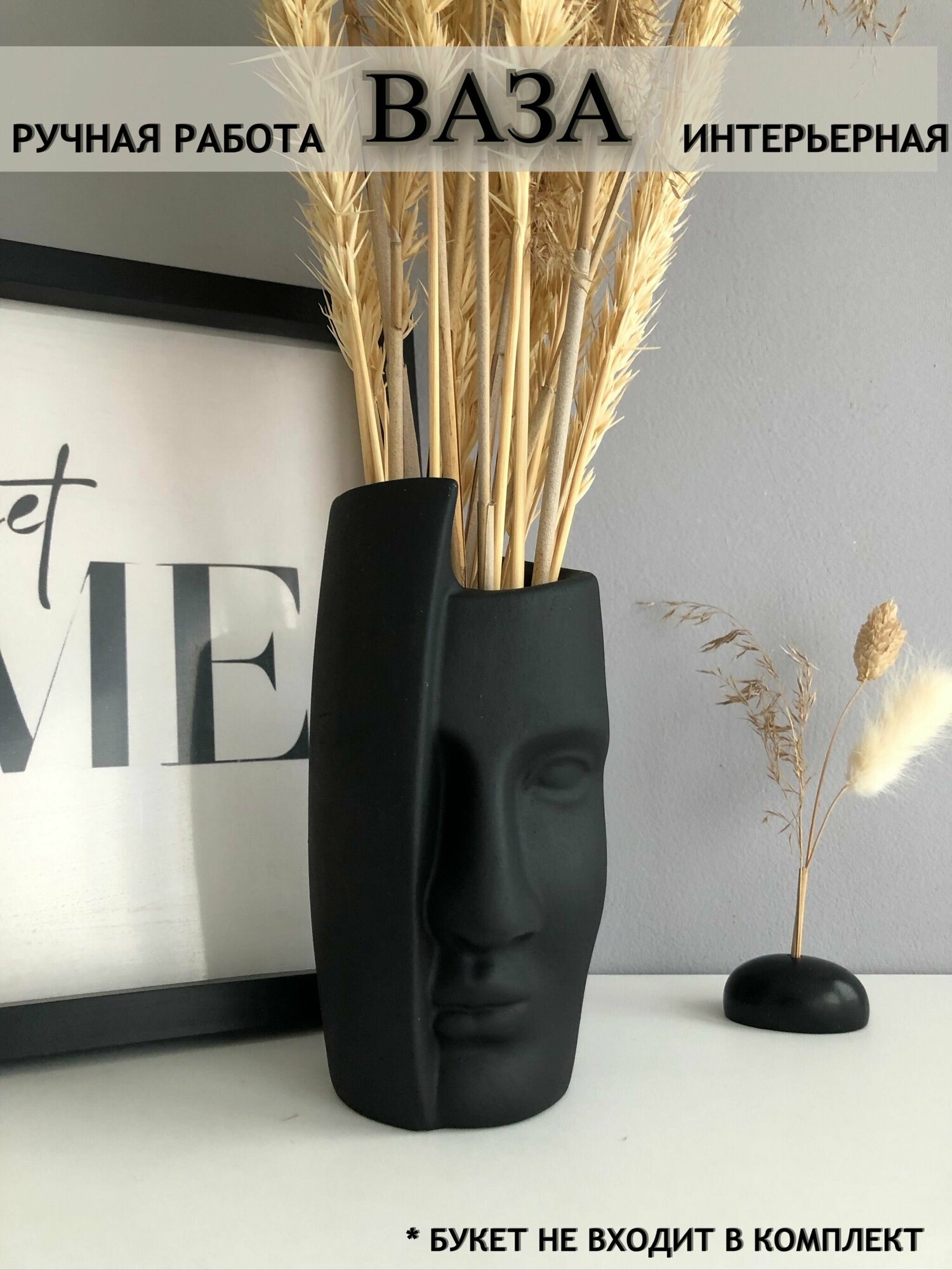 Ваза в скандинавском стиле "Полуликий" для сухоцветов 15 см , Гипс интересное: