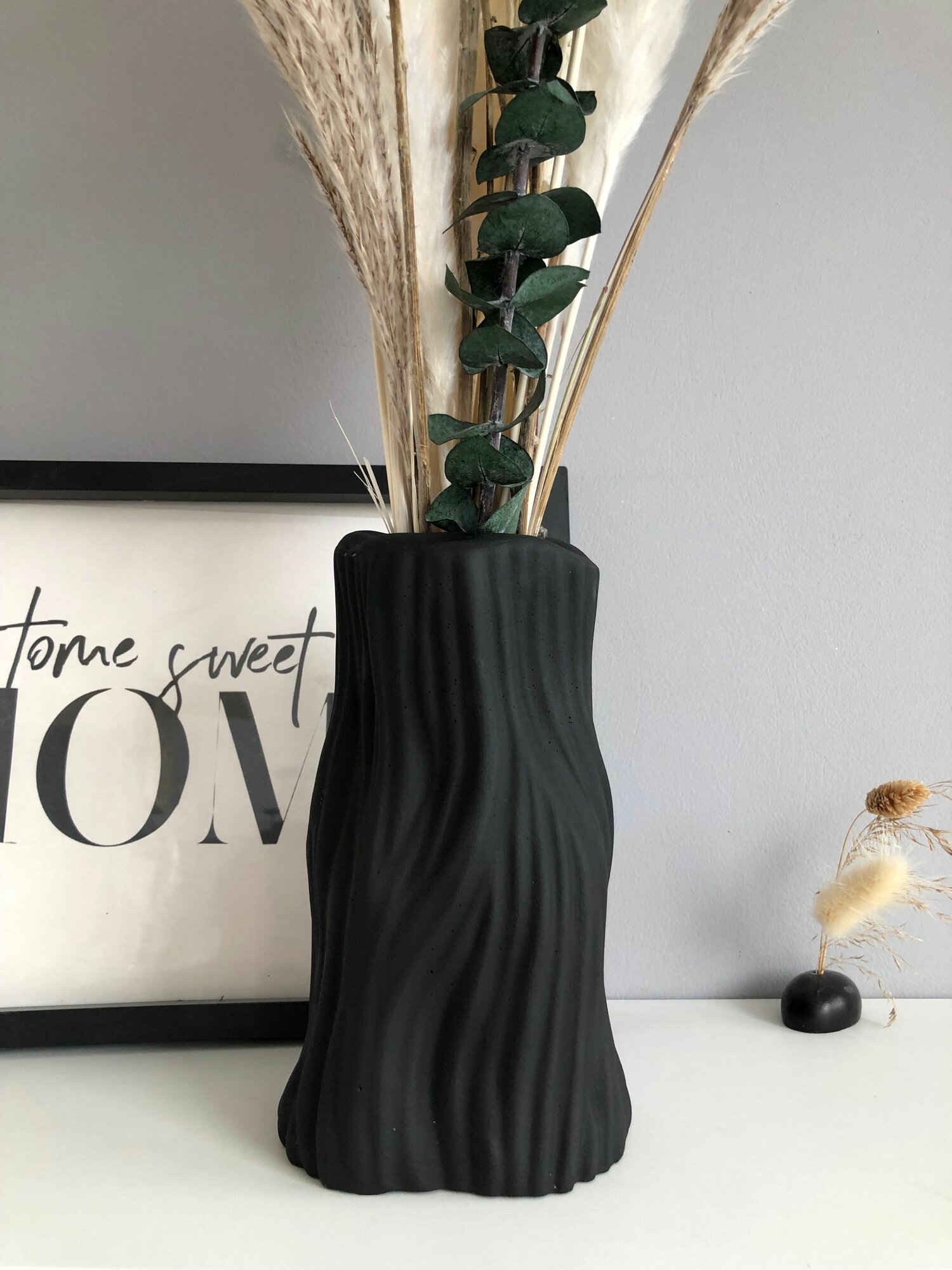 Ваза в скандинавском стиле "Полуликий" для сухоцветов 15 см , Гипс