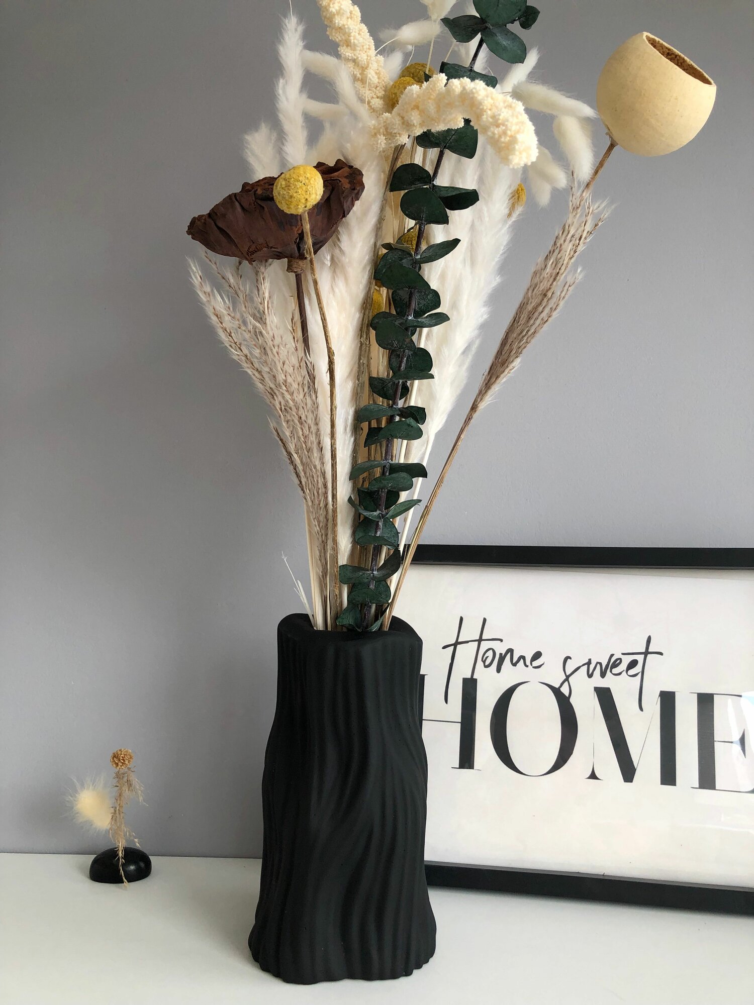 Ваза в скандинавском стиле "Полуликий" для сухоцветов 15 см , Гипс