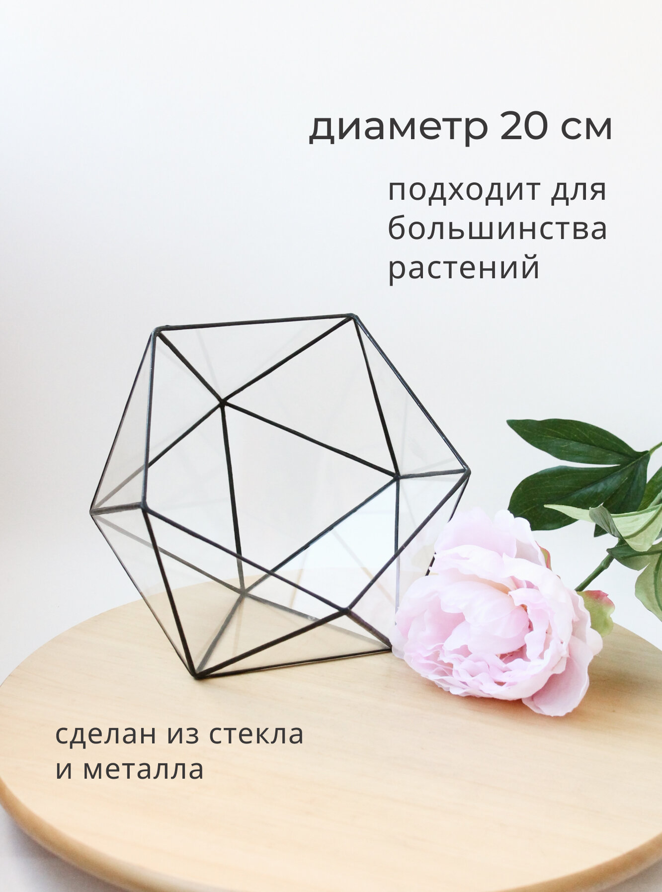 Флорариум Икосаэдр (кашпо) d-20 см. Glass Flowers. Стеклянная геометрическая форма для флорариума интересное: