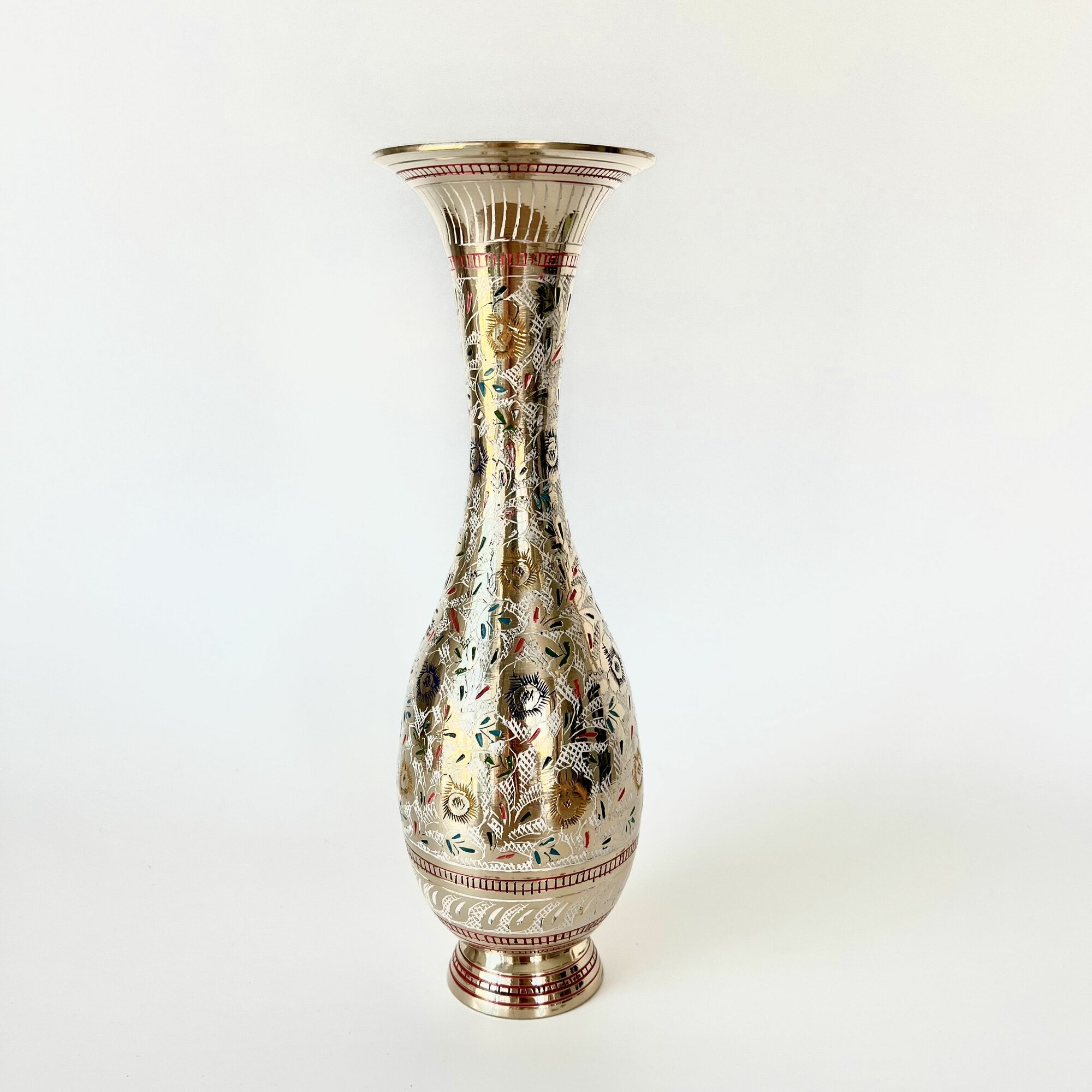 Ваза металлическая, латунь, эмаль, высота 25см, ручная работа, Индия подарок учителю интересное: