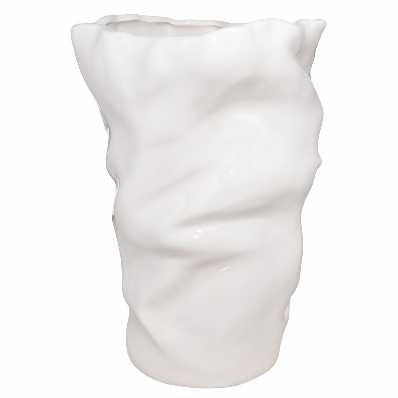 Купить Ваза для цветов, 27 см, керамика, молочная, Мятый эффект, Crumple