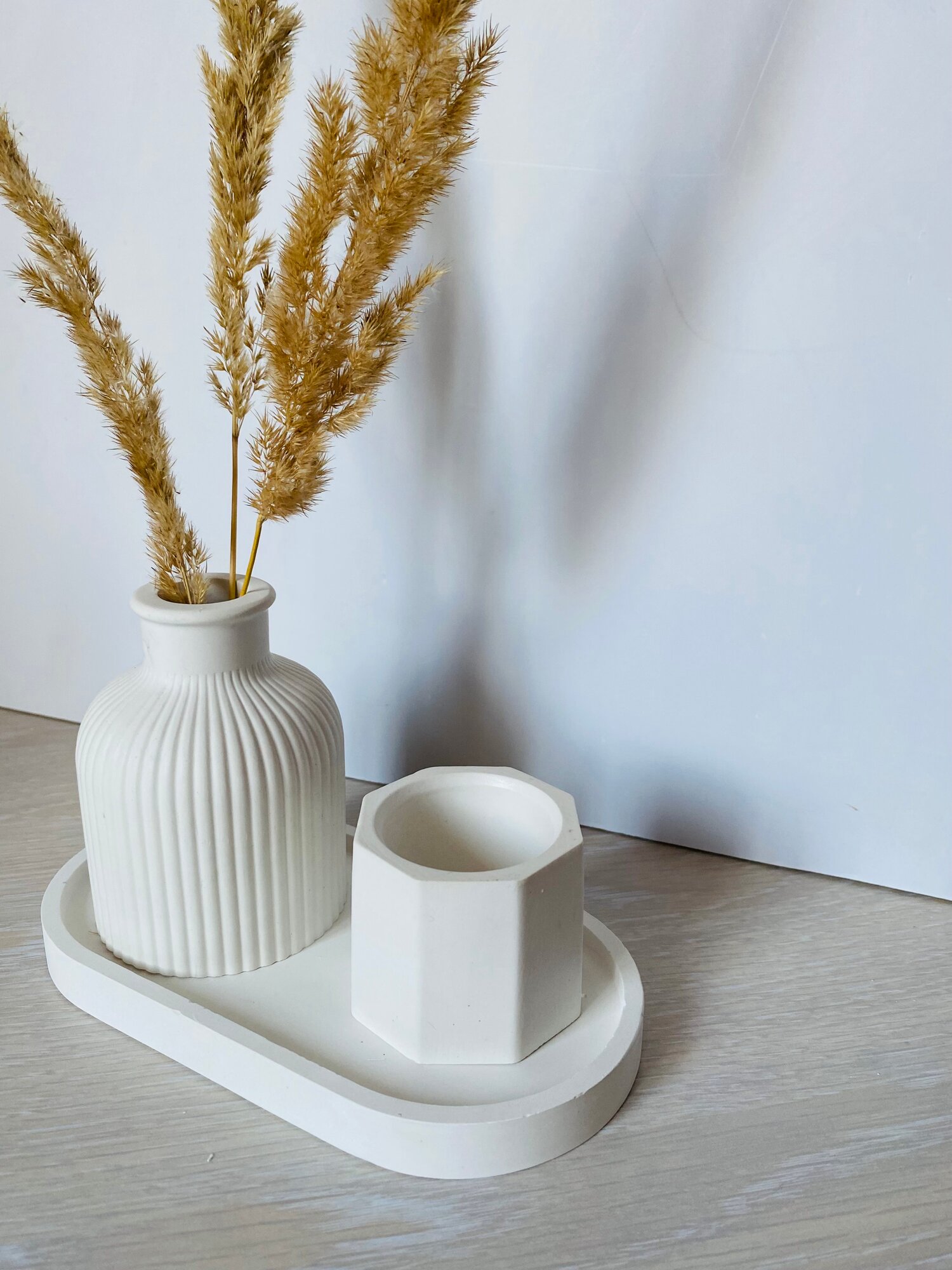 Набор декоративный для дома "белый"/ Набор декор для дома из гипса/ Ваза для сухоцветов