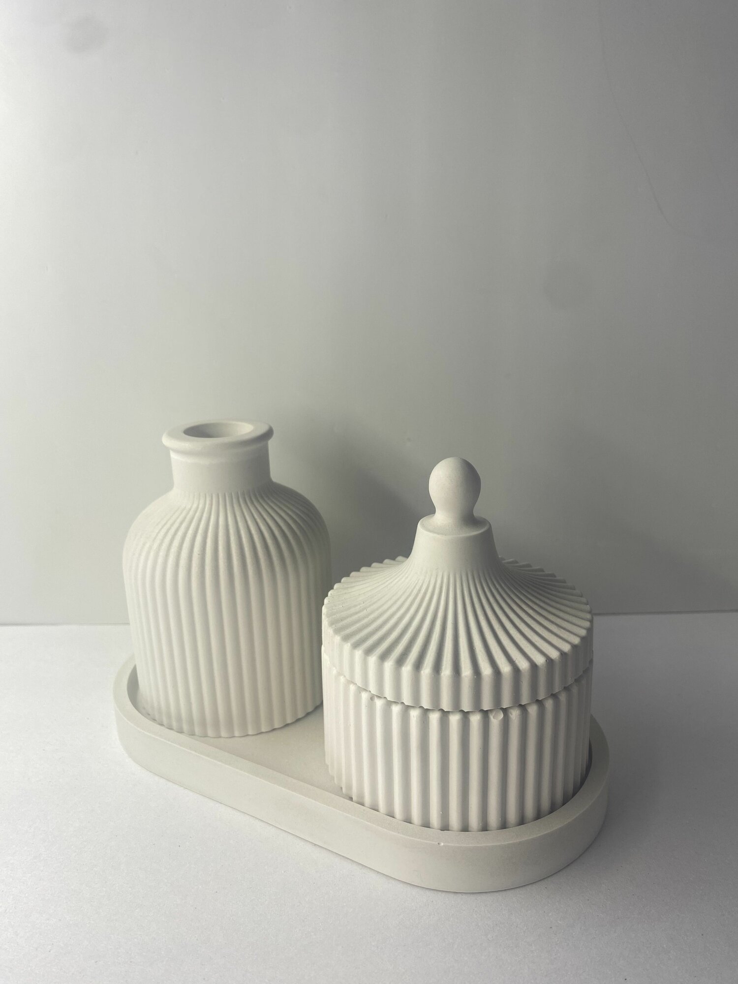 Набор декоративный для дома "мрамор"/ Набор декор для дома из гипса/ Ваза для сухоцветов