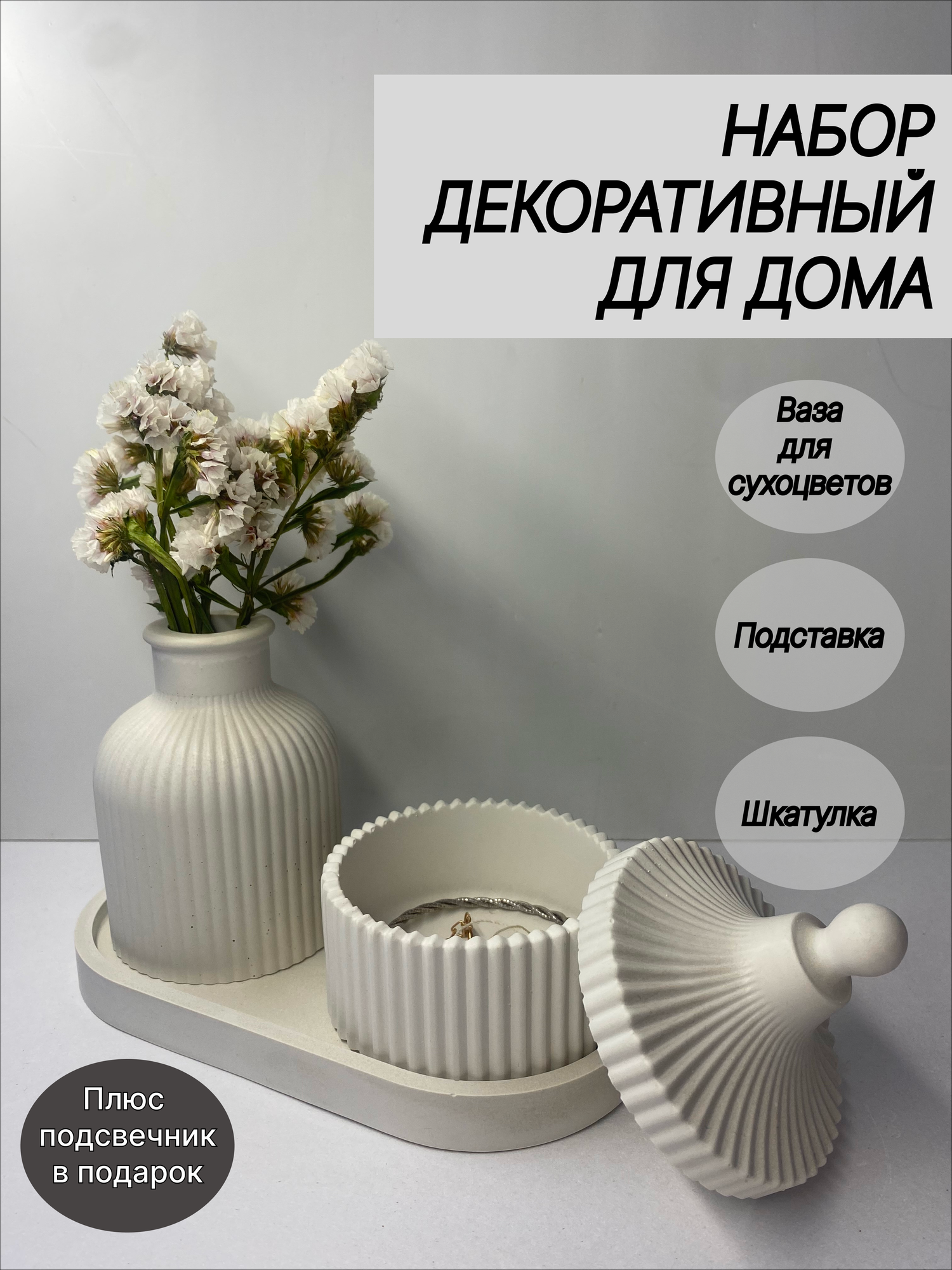 Купить Набор декоративный для дома "белый" с шкатулкой/ Набор декор для дома из гипса/ Ваза для сухоцветов