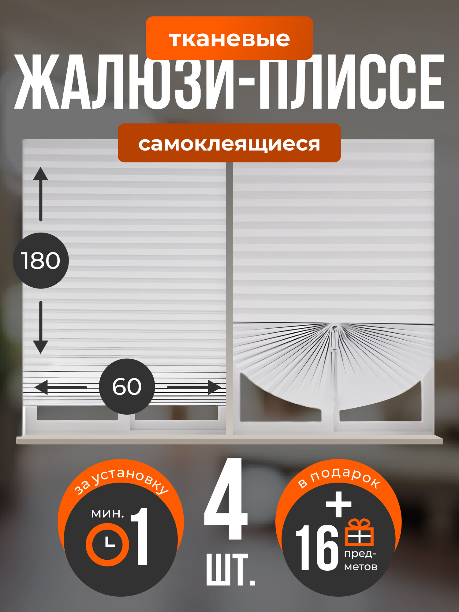 Жалюзи самоклеящиеся тканевые 60*180 см комплект 4 шт. интересное: