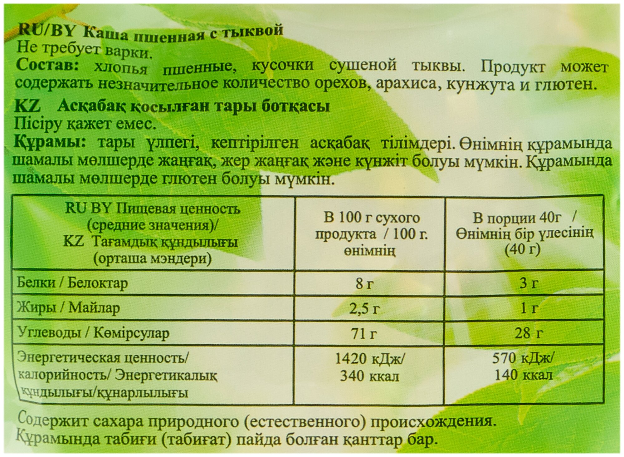 Каша пшенная с тыквой 350 гр без добавления соли и сахара ОГО! интересное: