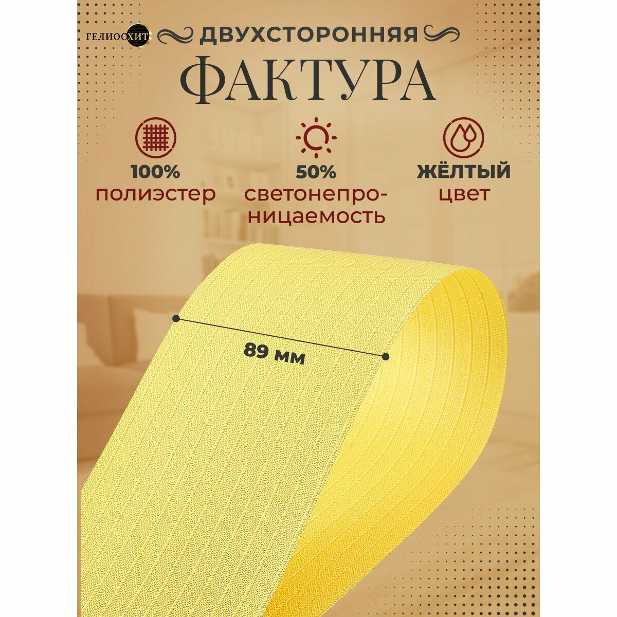 Ламели для вертикальных жалюзи 10 шт высотой 255 см лимонные, ткань Лайн, гелиосхит, карниз приобретается отдельно.