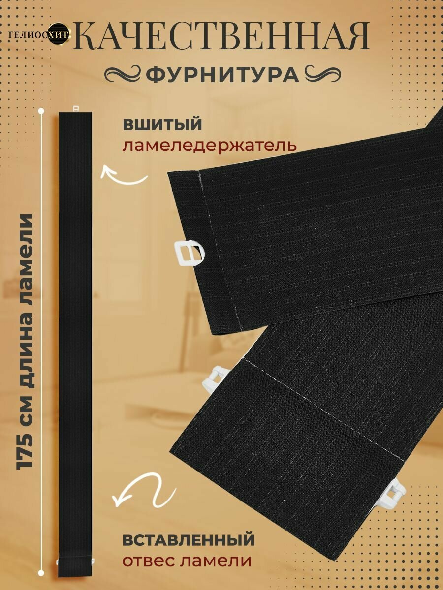 Ламели для вертикальных жалюзи 10 шт высотой 175 см черные, ткань Лайн, гелиосхит, карниз приобретается отдельно.