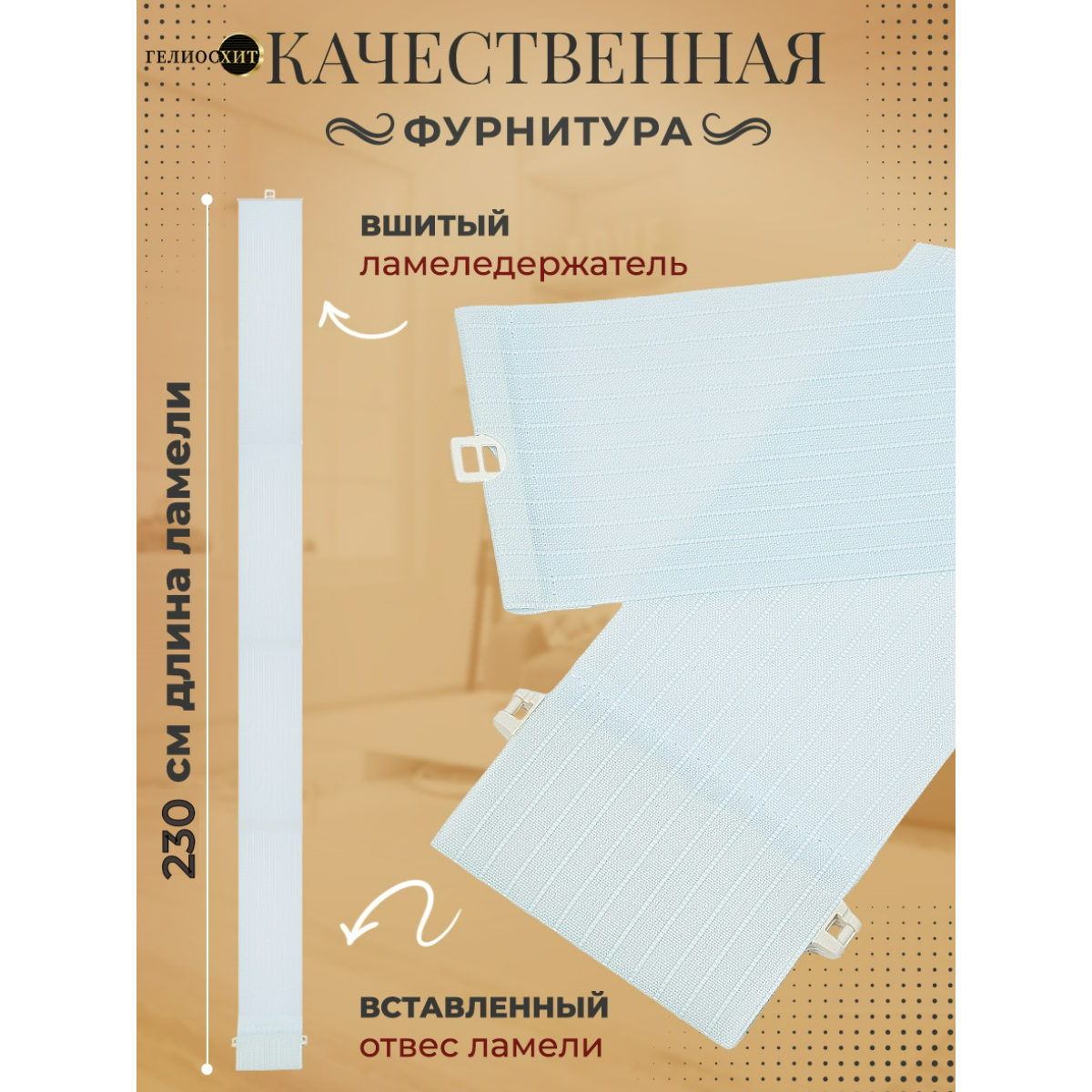 Ламели для вертикальных жалюзи 25 шт высотой 235 см темно-бежевого цвета, карниз приобретается отдельно, гелиосхит.