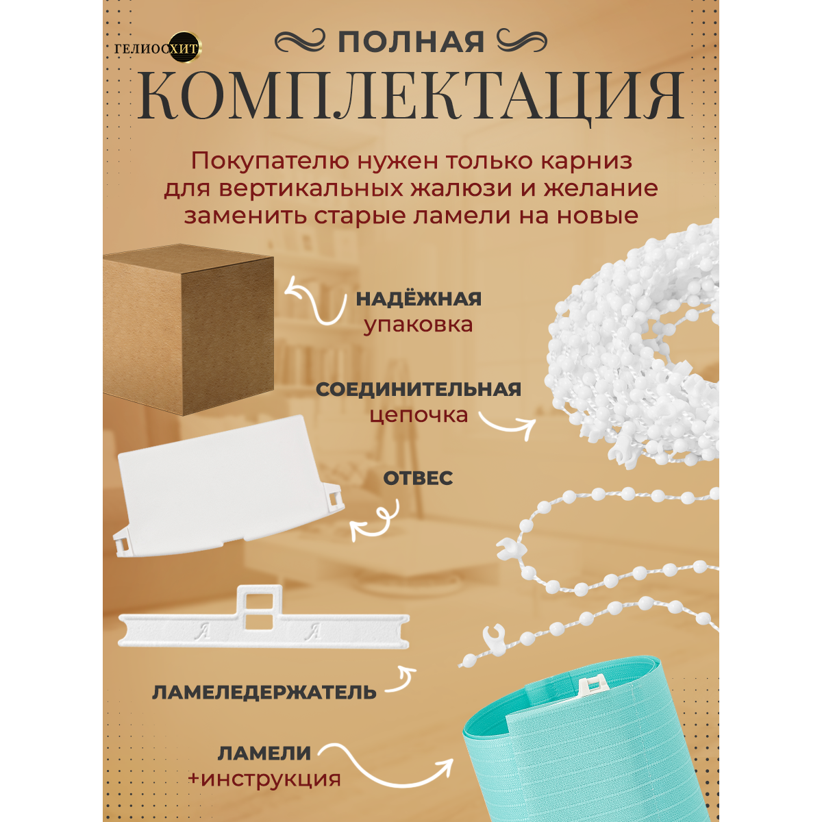 Ламели для вертикальных жалюзи 30 шт высотой 170 см темно-бежевого цвета, карниз приобретается отдельно, гелиосхит.