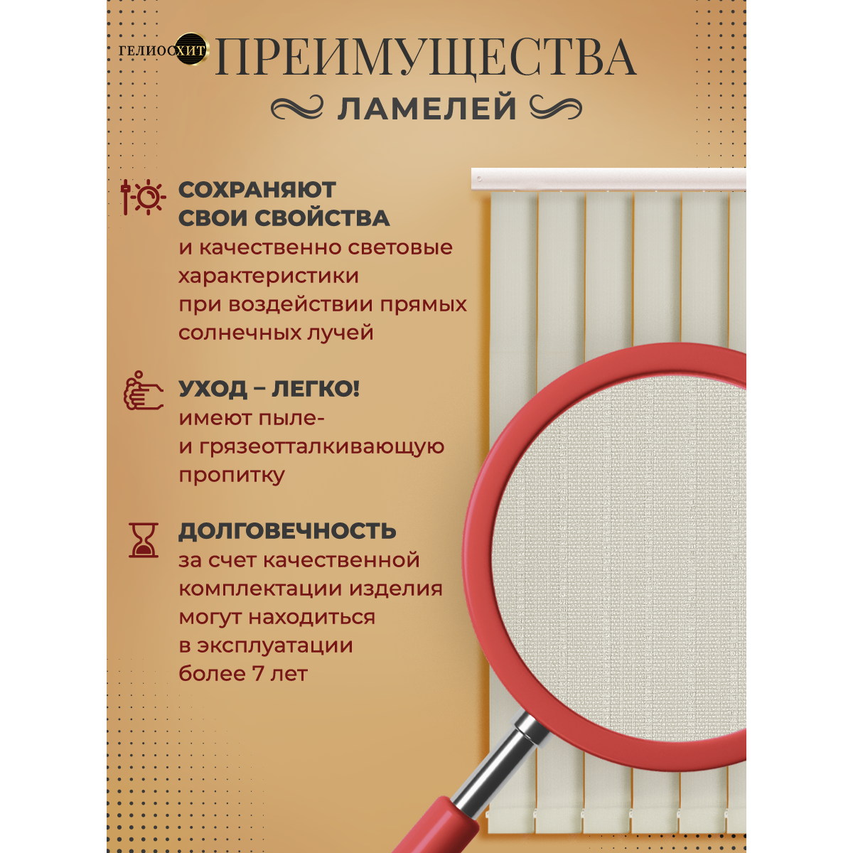 Ламели для вертикальных жалюзи 25 шт высотой 215 см темно-бежевого цвета, карниз приобретается отдельно, гелиосхит.