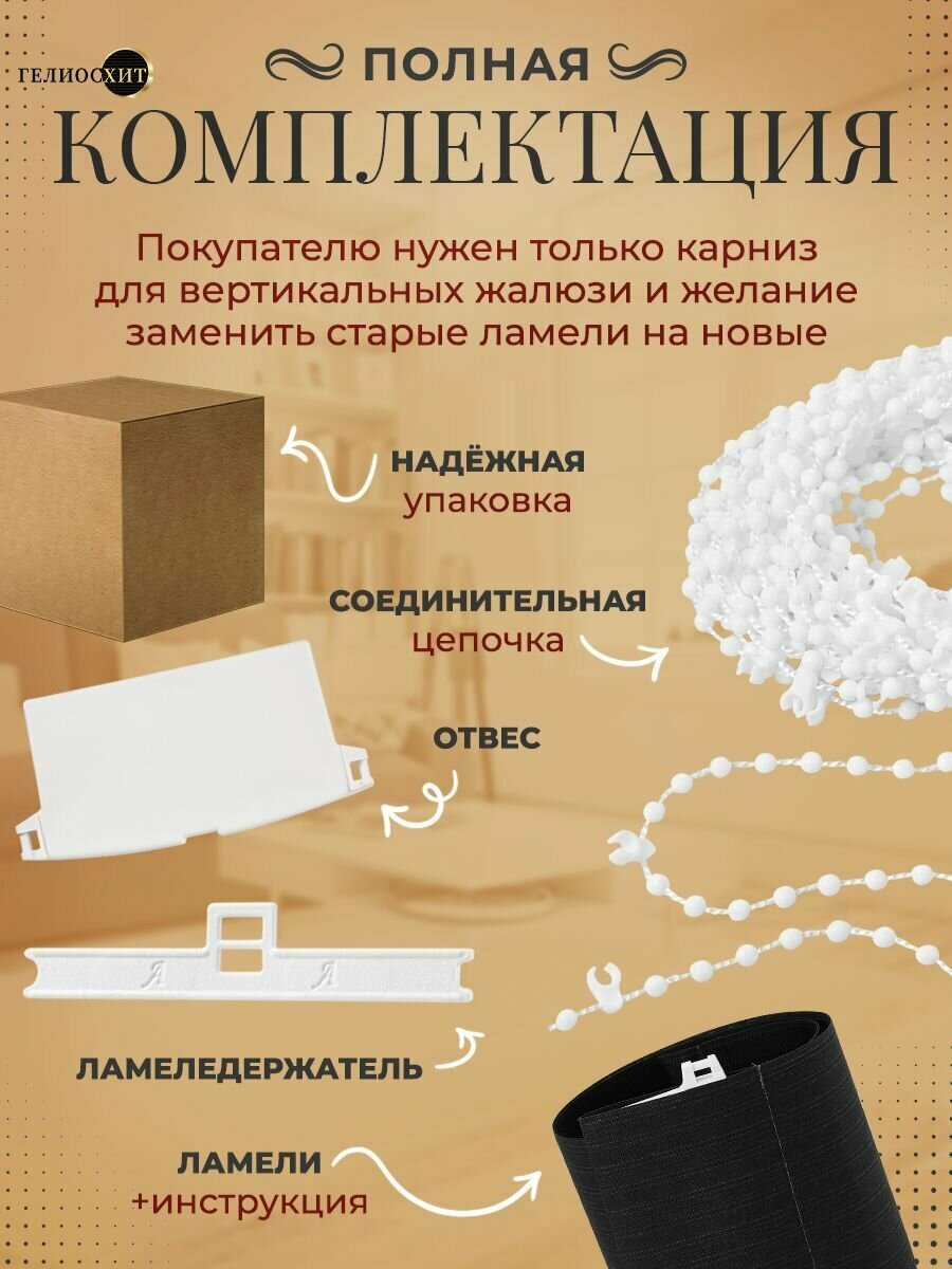 Ламели для вертикальных жалюзи 10 шт высотой 195 см черные, ткань Лайн, гелиосхит, карниз приобретается отдельно.